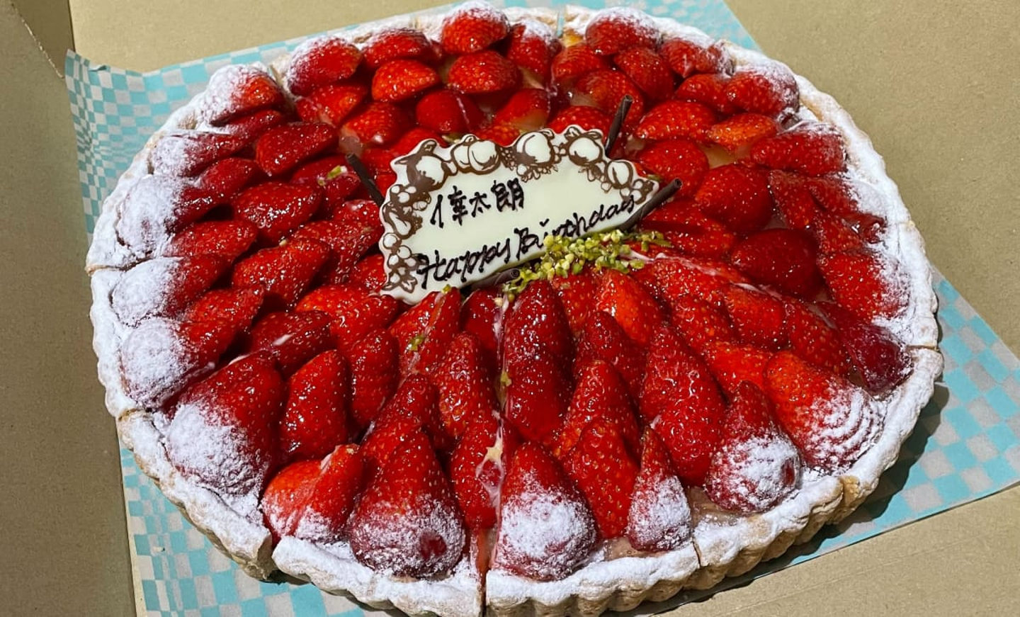 いちごがふんだんに使われた豪華なバースデータルトです。