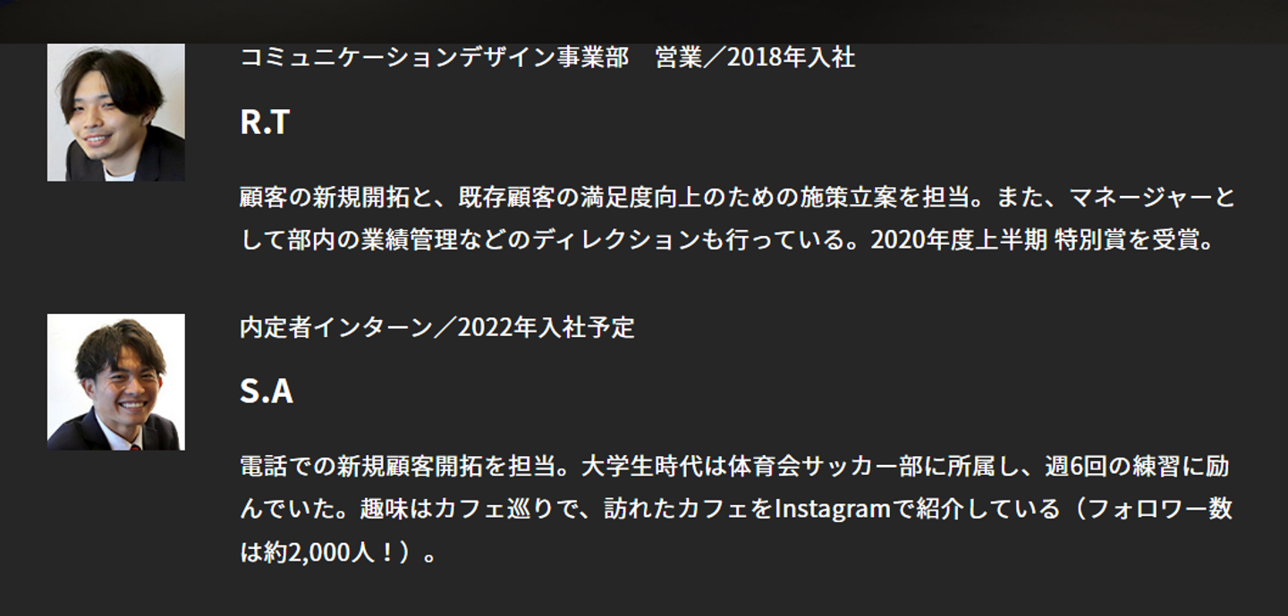 S.A: R.Tさんはいつも困っていることはないか気にかけてくださり、とても頼りがいがある先輩です!休みの日も僕たちのことを考えくれているとお聞きしまして・・・。