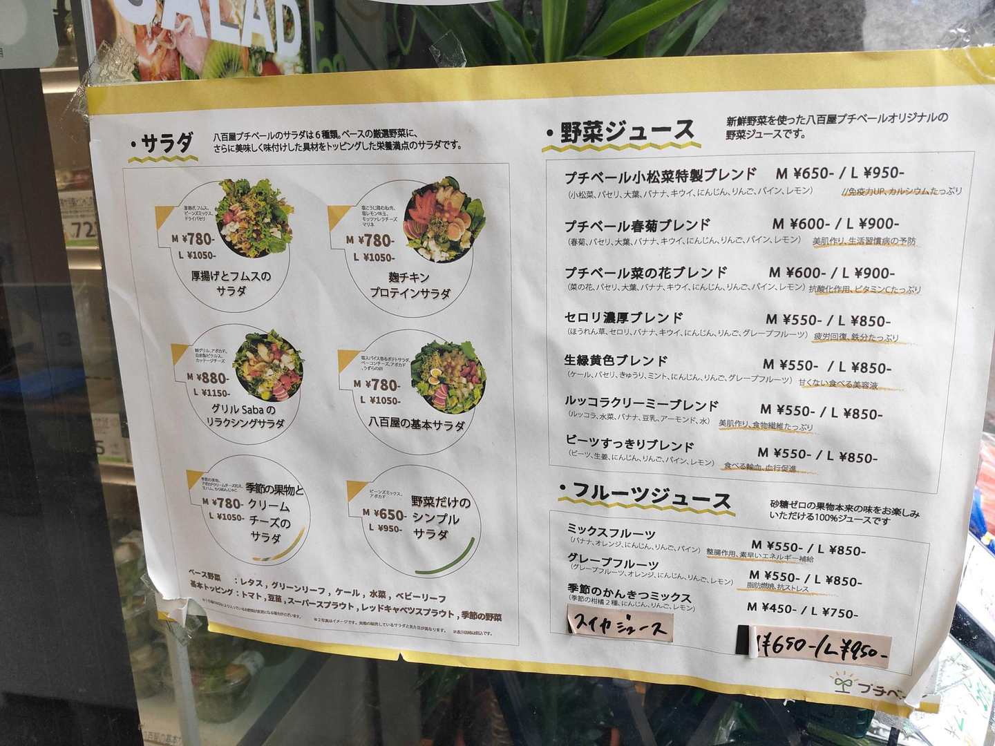 お店に貼ってるメニューもつけておきます。