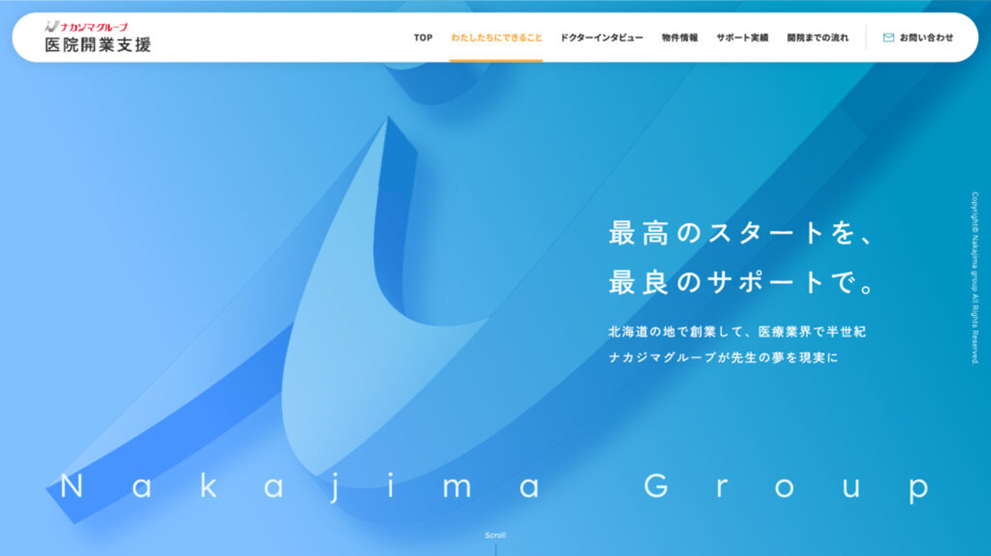 フロントエンド、アニメーション担当の須藤です。今回は「ナカジマグループの医院開業支援」リニューアルで手掛けた3Dアニメーションについてお話します。