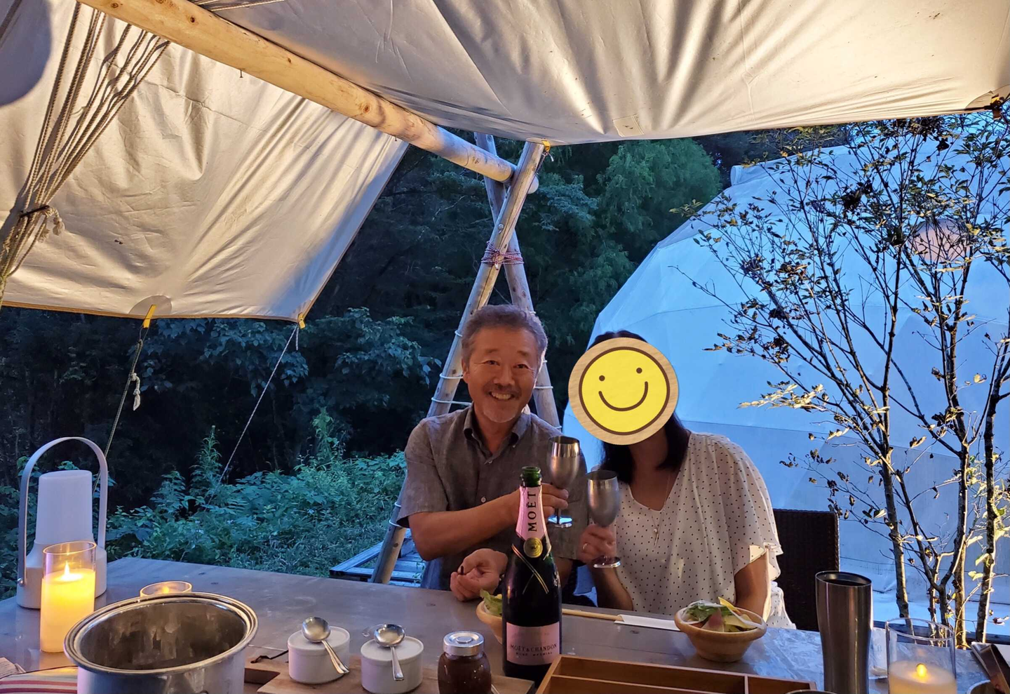 国内のゴルフ倶楽部+グランピングで結婚記念日イベントを過ごされたのだそう。