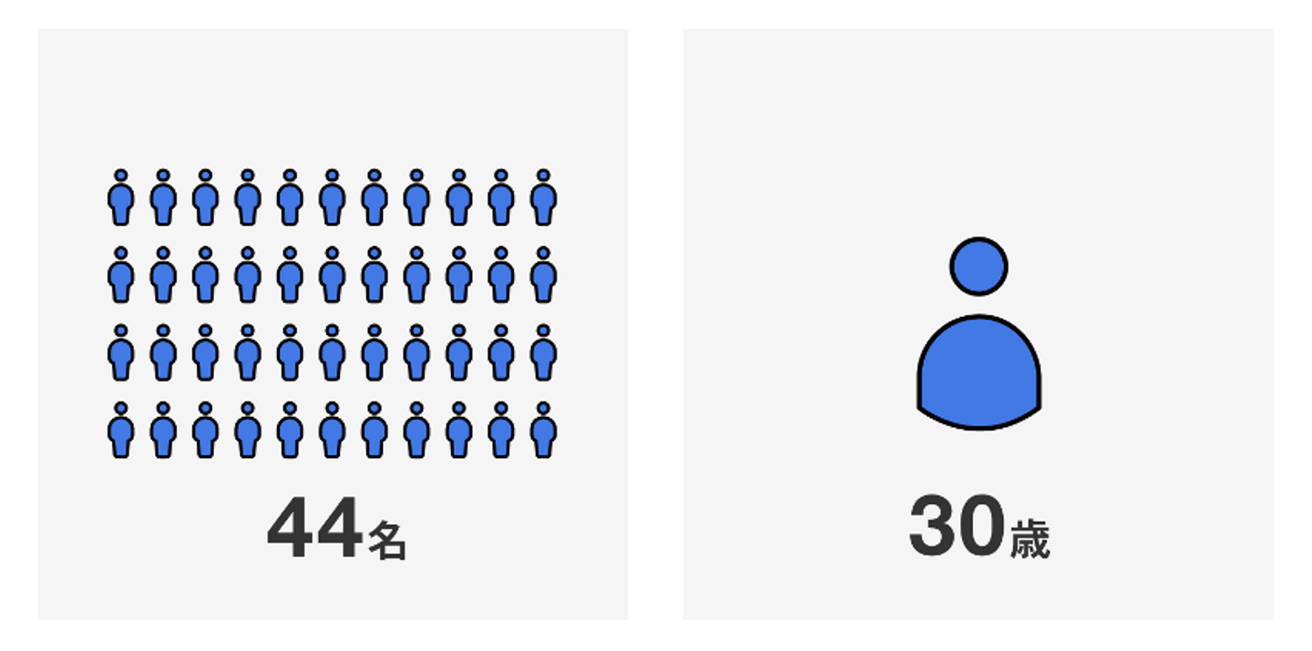 従業員は44名まで増え、平均年齢は少し上がって30歳。