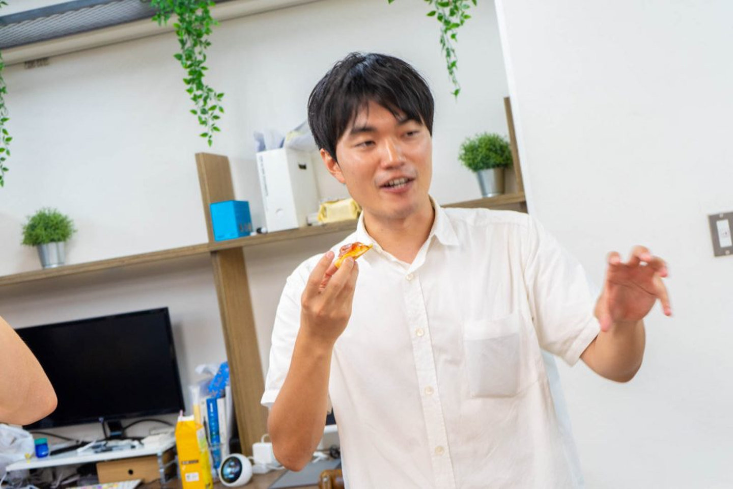 お酒を片手に上田さんと意見を交換をするなど、社内外関係なく交流できる場はとても貴重です。