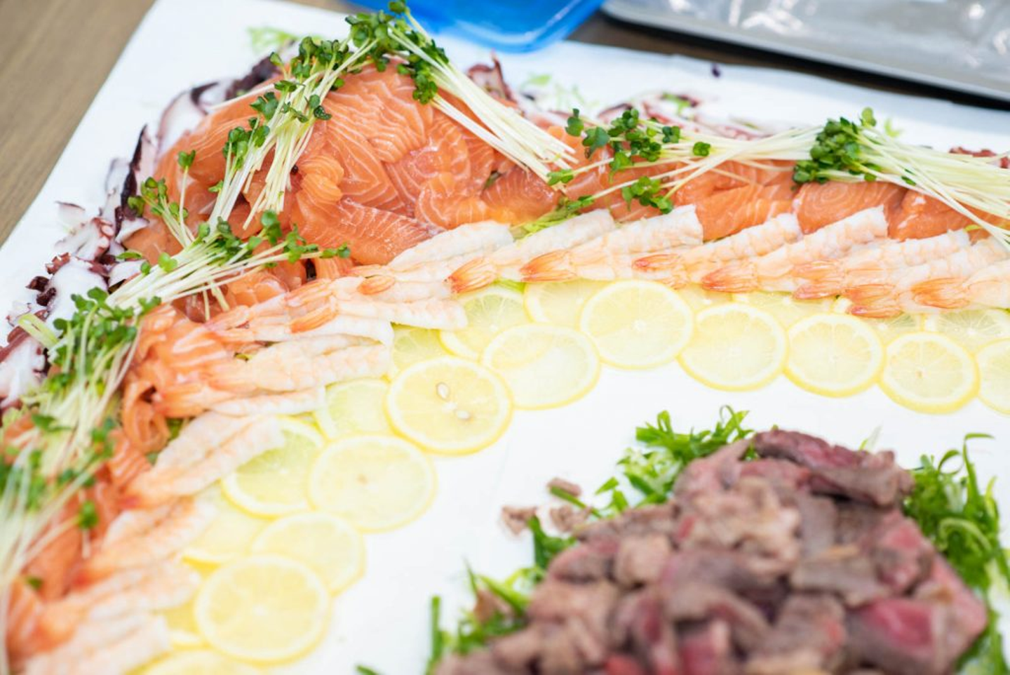 今日の勉強会メシはいつもと違う?!シェフによる豪華魚貝刺し盛り!!