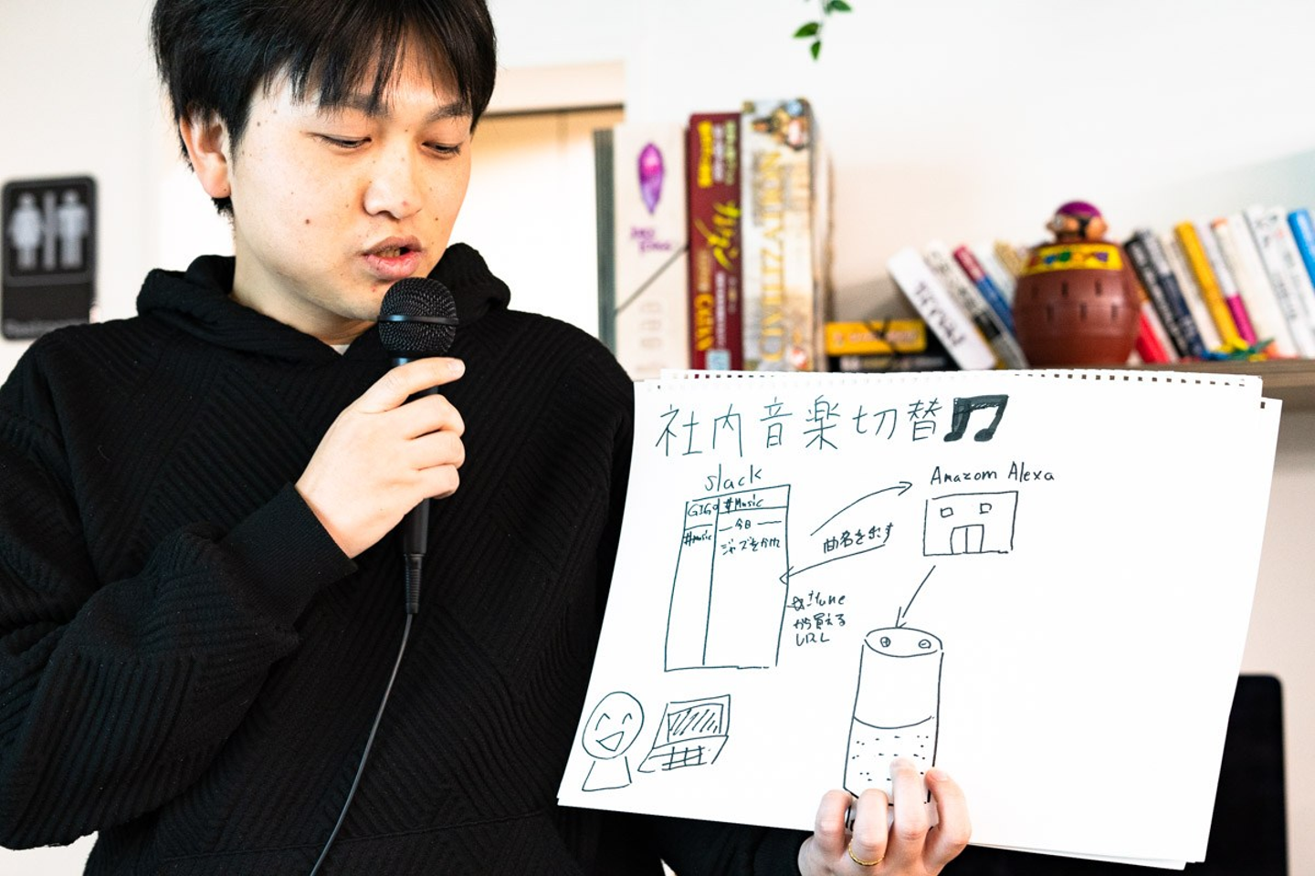 個人が聴いている音楽をシェアできるチャンネルです。仕事中にヘッドホンで好きな音楽を聴いているエンジニアが多いことに気づいたところから発想したとのこと。