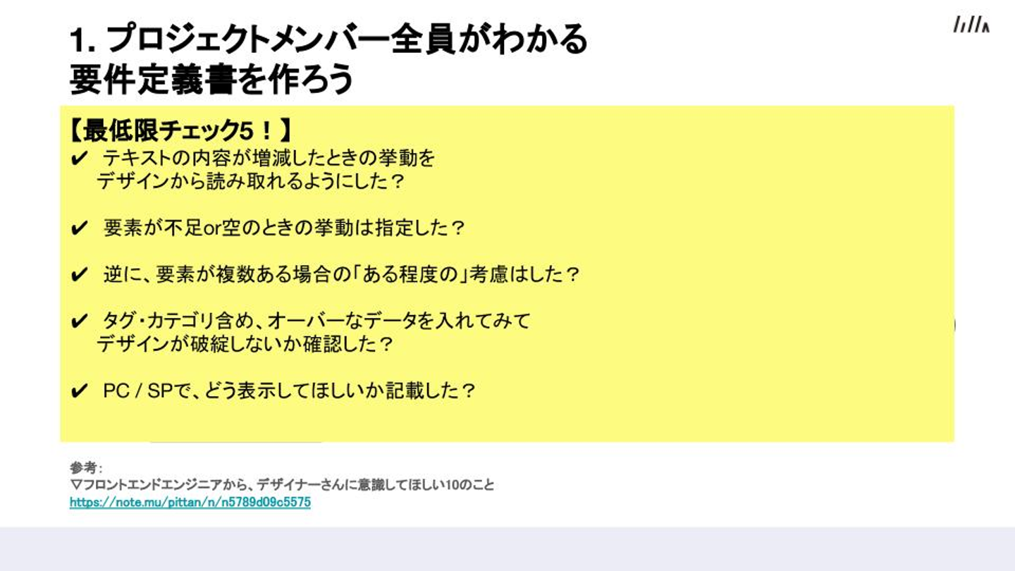 氏江:「参考は『フロントエンドエンジニアから、デザイナーさんに意識してほしい10のこと』のnote。わかりやすくまとめてあったのでおすすめです」