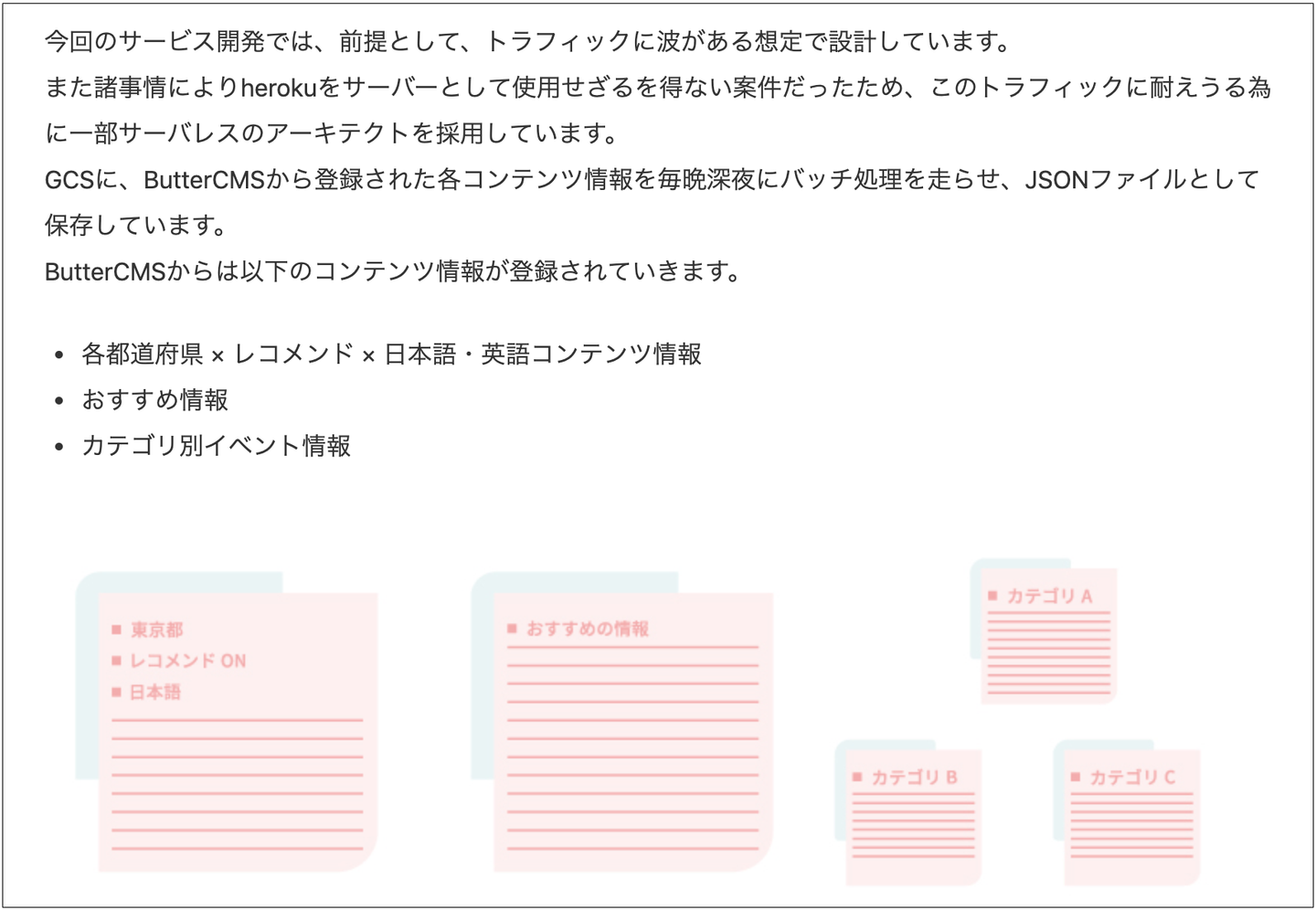 秋津:「今回はトラフィックに波が激しくあることが予測されるサービスの設計だったため、一部サーバーレスのアーキテクチャを採用しました。リクエストが最大どれくらい来るのか、メモリはどう制御するのか、運用してから想定より多くリクエストが来てしまった時どう対応するのかなど、インフラ側の諸々のタスクを考えなくても問題ない構成にしました」