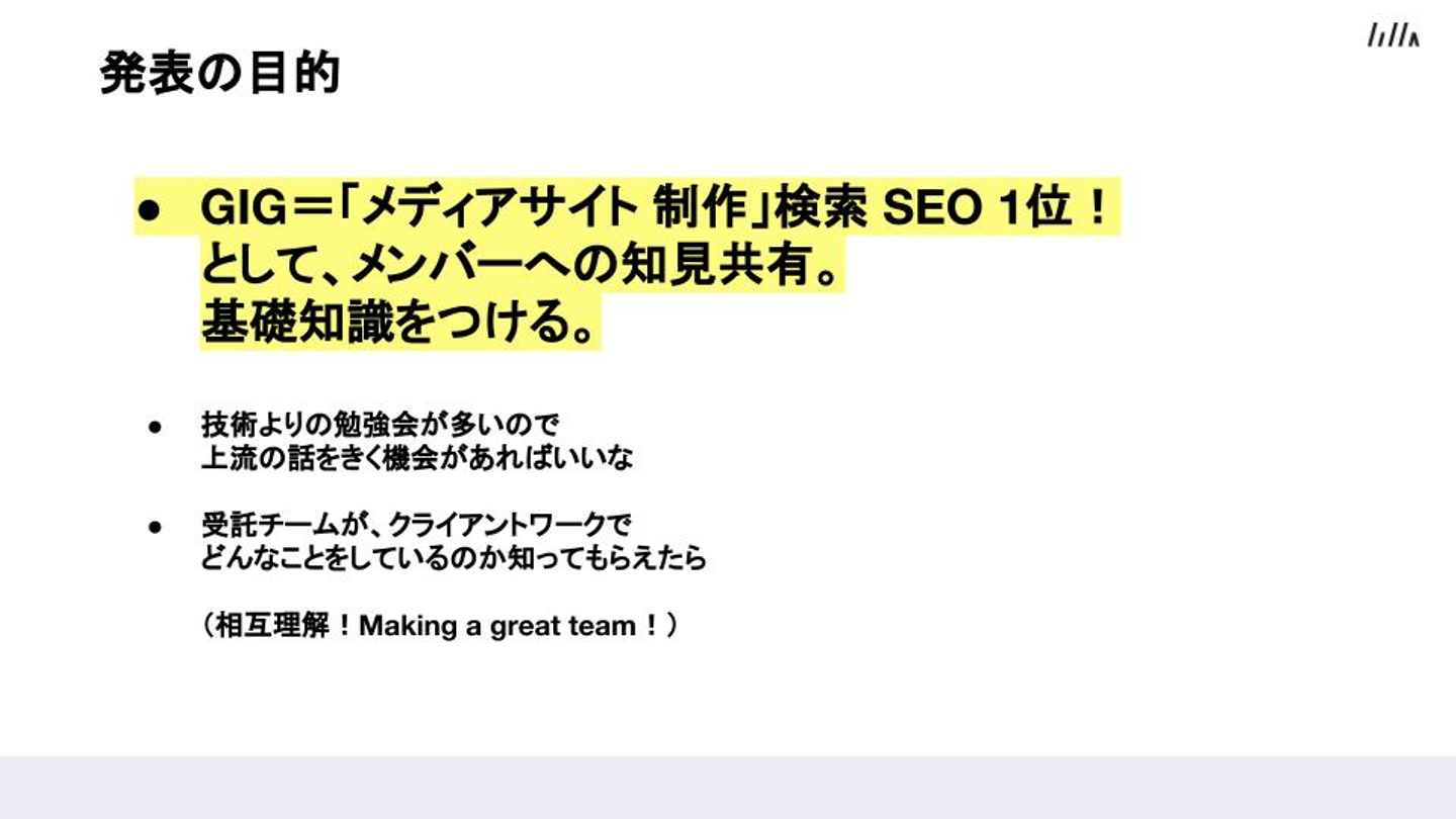 先日開催された第27回社内勉強会も前回に引き続き、GIGのconnpassページ上で10名限定で社外の方も参加できる枠を設けました。