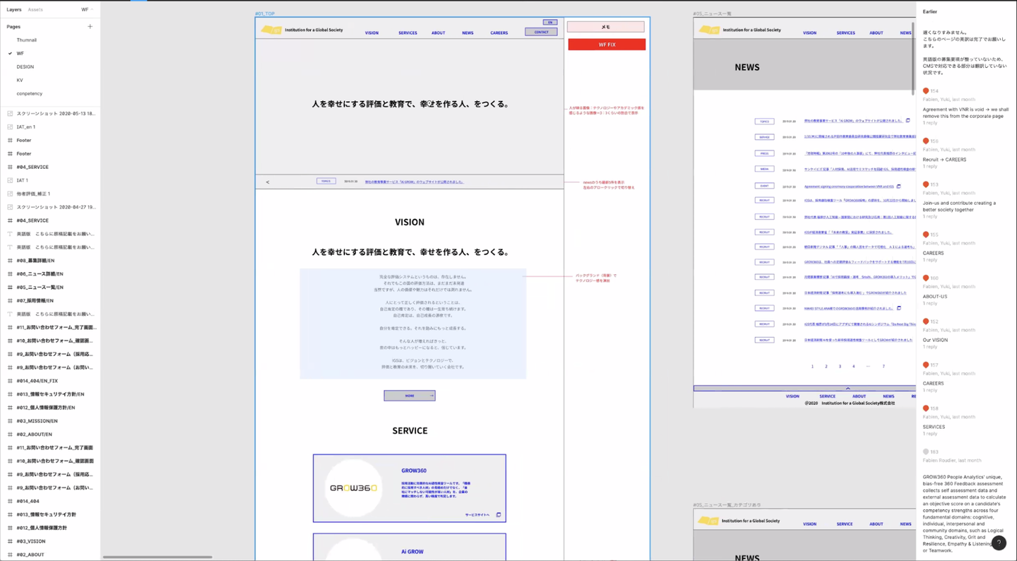 小川:私自身はFigmaを使うのが今回はじめてだったのですが、とても使いやすかったです。まずデザインの確認が簡単にできて、コメントも入れられる。さらに自分が見たいページにすぐ飛べるので、とても操作しやすかったです。使い方を知らなくても、いじっていれば理解できるのもいいですよね。
