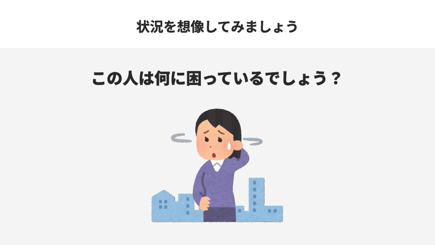 最初のステップは、相手の状況を高い精度で想像することです。早速1つ目のワークをしてみましょう!