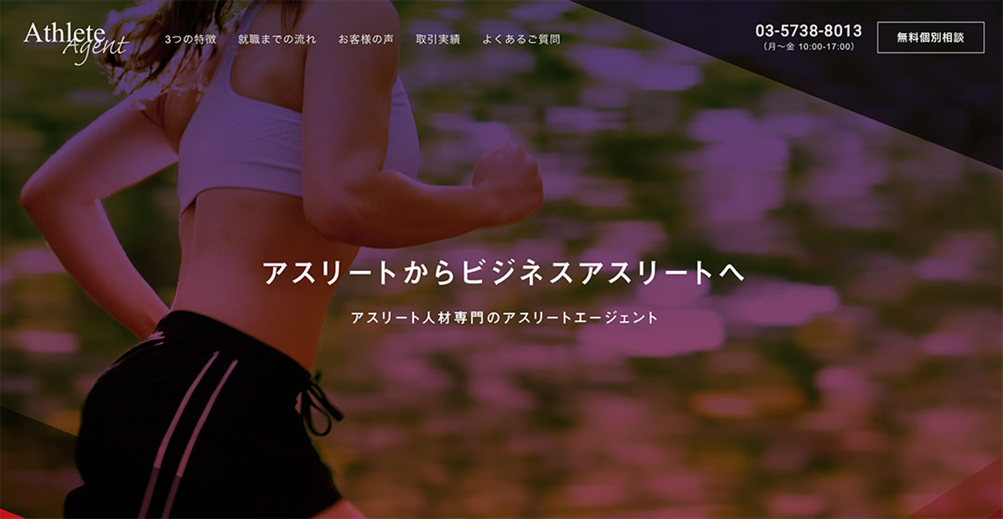 「Athlete Agent」さまのランディングページ