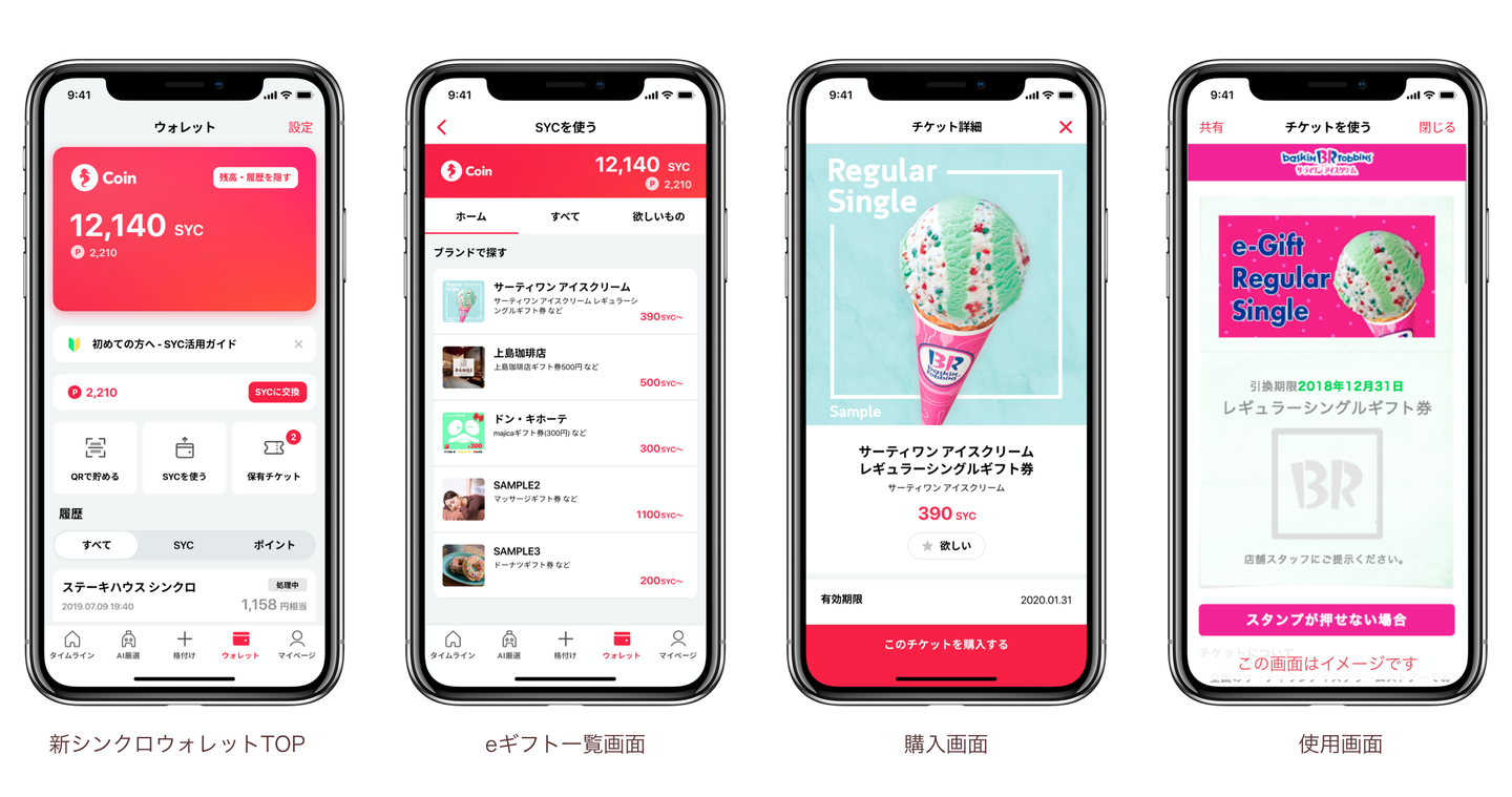 まずは「サーティワン アイスクリーム」「上島珈琲店」など全7ブランドの商品が登場。購入に必要なシンクロコインは、シンクロコインの市場取引レートによって一定期間ごとに変動します。購入したeギフトはプレゼントもできるため、ひとりでもみんなでも楽しむことができます。eギフトは「giftee for Business」のラインナップから、また新規開拓により順次ブランドを追加予定。さらに多くの体験が暗号通貨(シンクロコイン:SYC)で購入できるようになります。