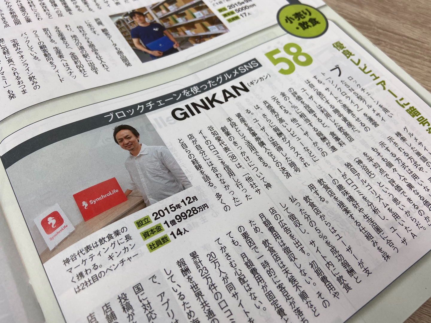 2020年8月22日号の「週刊東洋経済」の「すごいベンチャー100」次のユニコーンを探せ 大化け期待のベンチャーで株式会社GINKAN(シンクロライフ)が選出され、特集で紹介をいただきました。