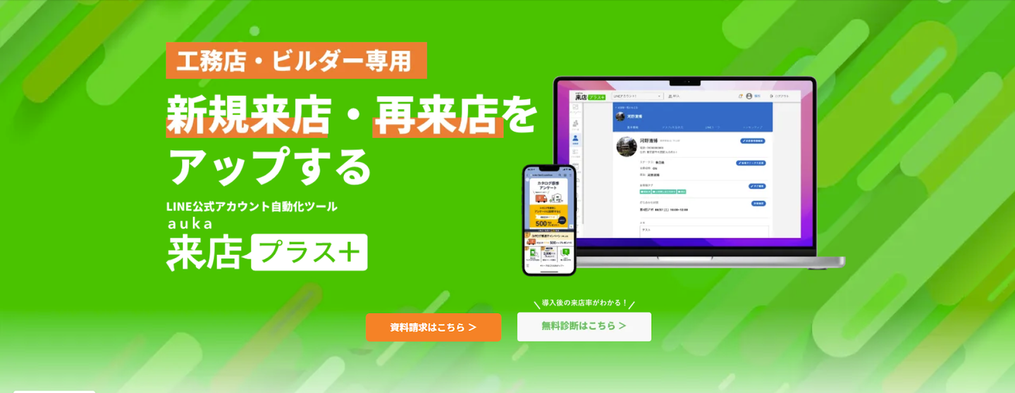 弊社では新規顧客獲得を目指す工務店様向けのLINE公式アカウント自動化ツール「auka 来店プラス+」が立ち上げから1年を迎えます。
