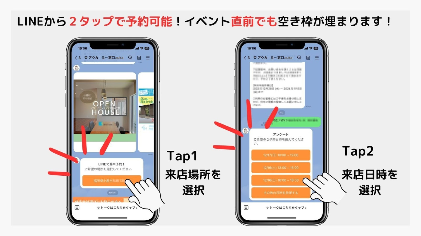 住宅購入検討者側にとっても、自分に合った住宅会社の中から比較検討できるようになるので、無駄がありません。また、来店予約をする際は、電話したりホームページから問い合わせなくても、日頃から使っているLINEで手軽にできるのでハードルが低くなります。