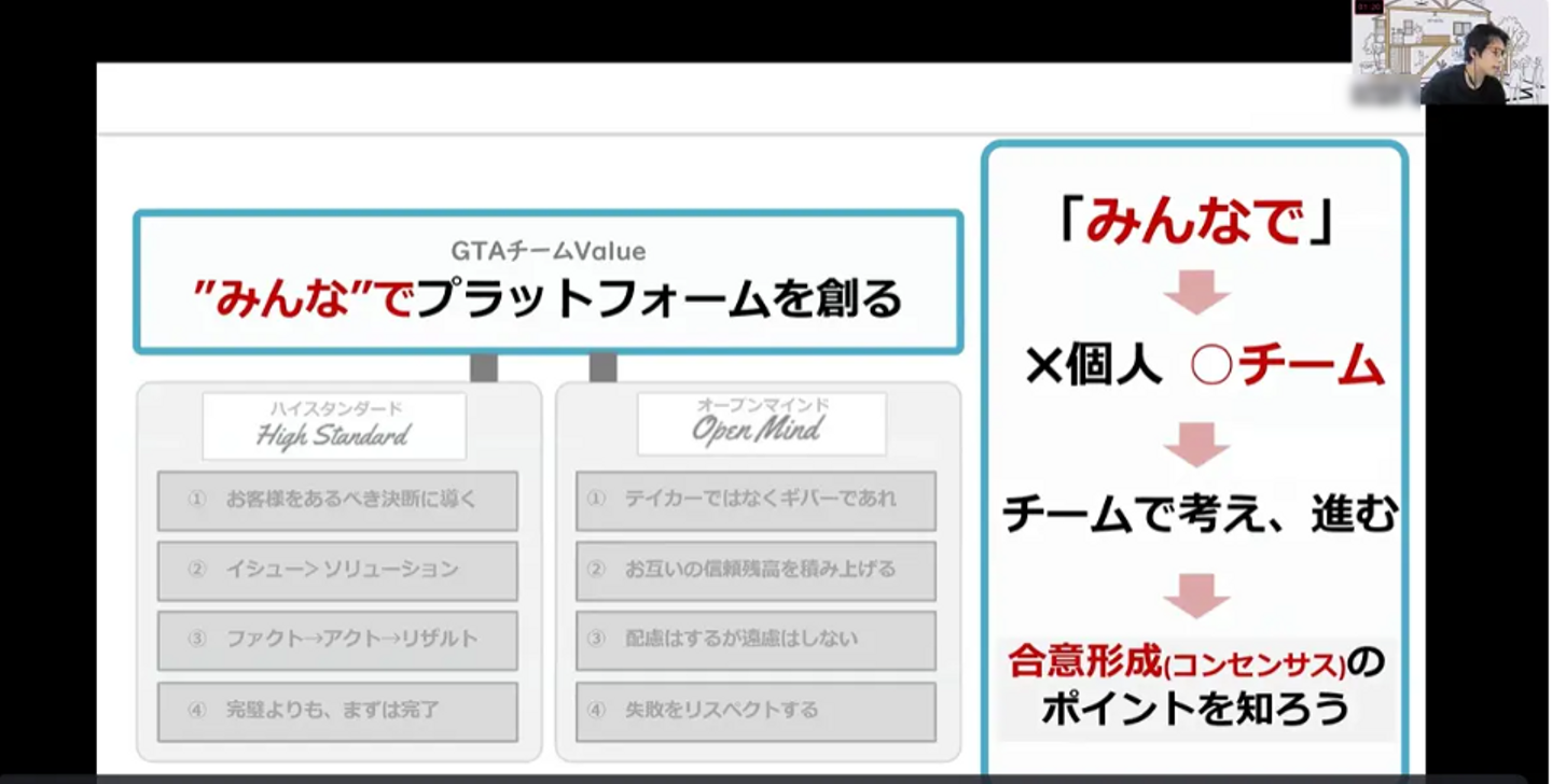 プログラム実施後、会議中に「そもそも目的は何だっけ?」といった指摘が増え、早速今回の取り組みの効果を感じています。今後もバリューに落とし込めるようなプログラムがあれば、積極的に導入していきたいと考えています。