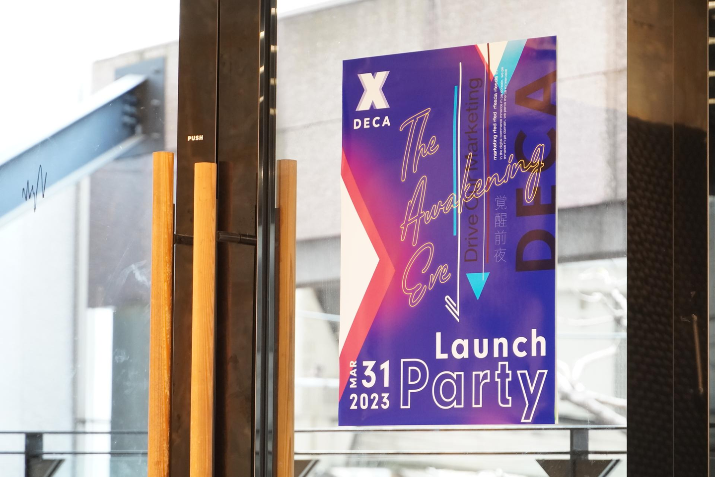 会場は、至るところに、ポスターや装飾が施され「DECA」一色に染まっていました。これ、今日のためだけにデザイナーが作った特製デザインなんです。