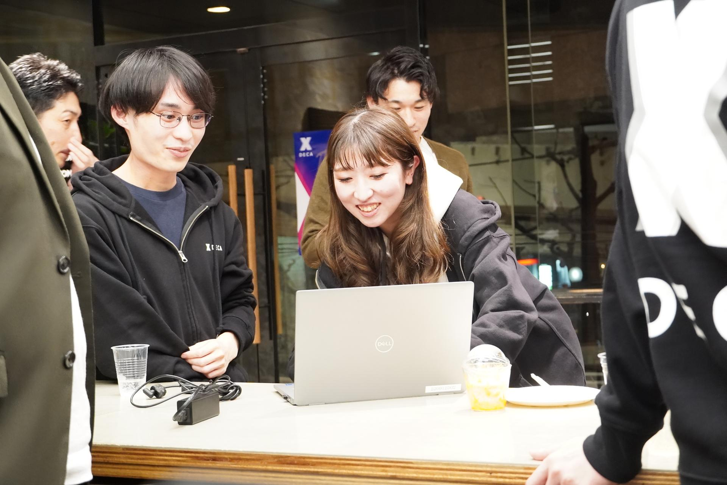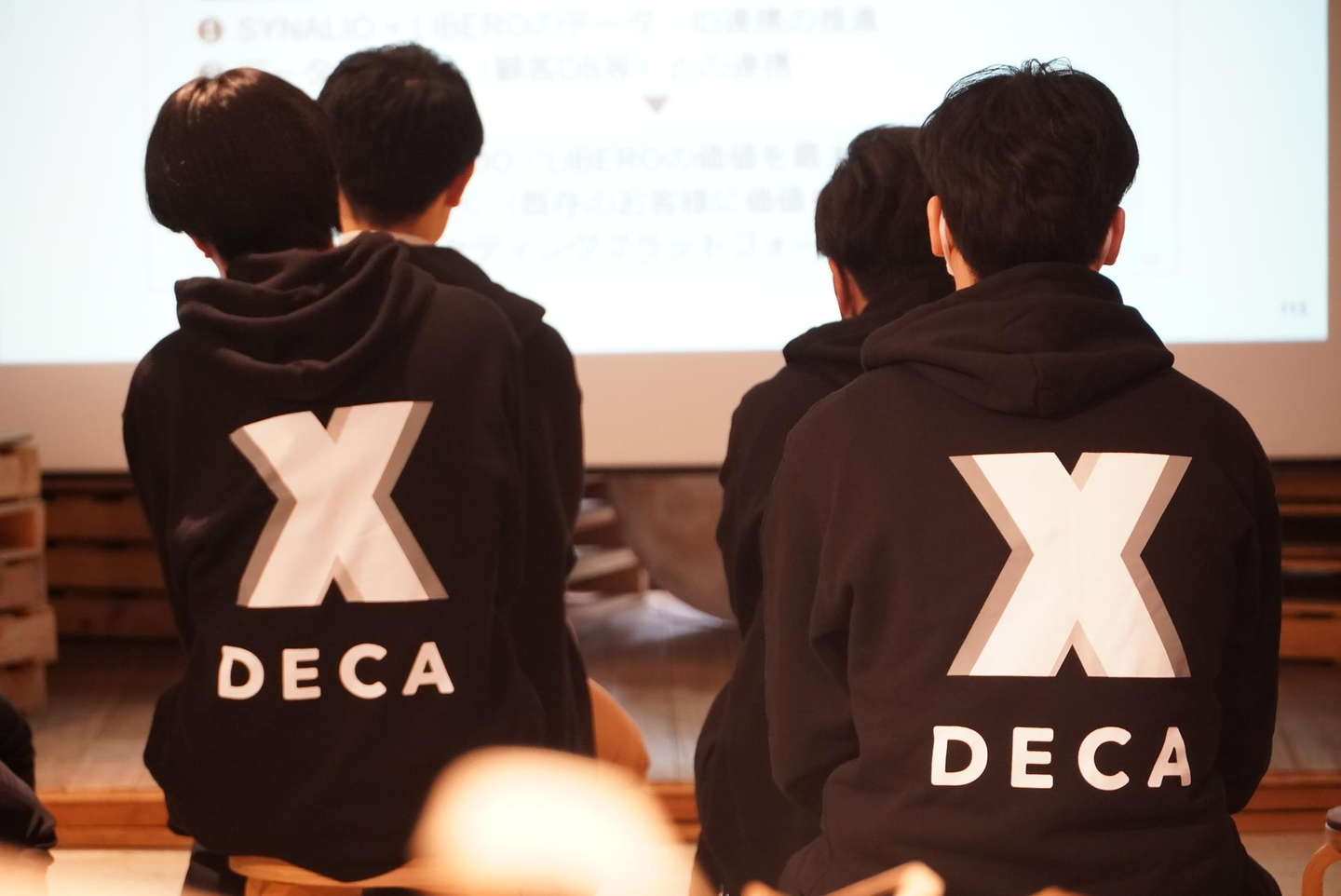 ▼背中に大きく「X」が描かれたDECAパーカーで気持ちを一つに。