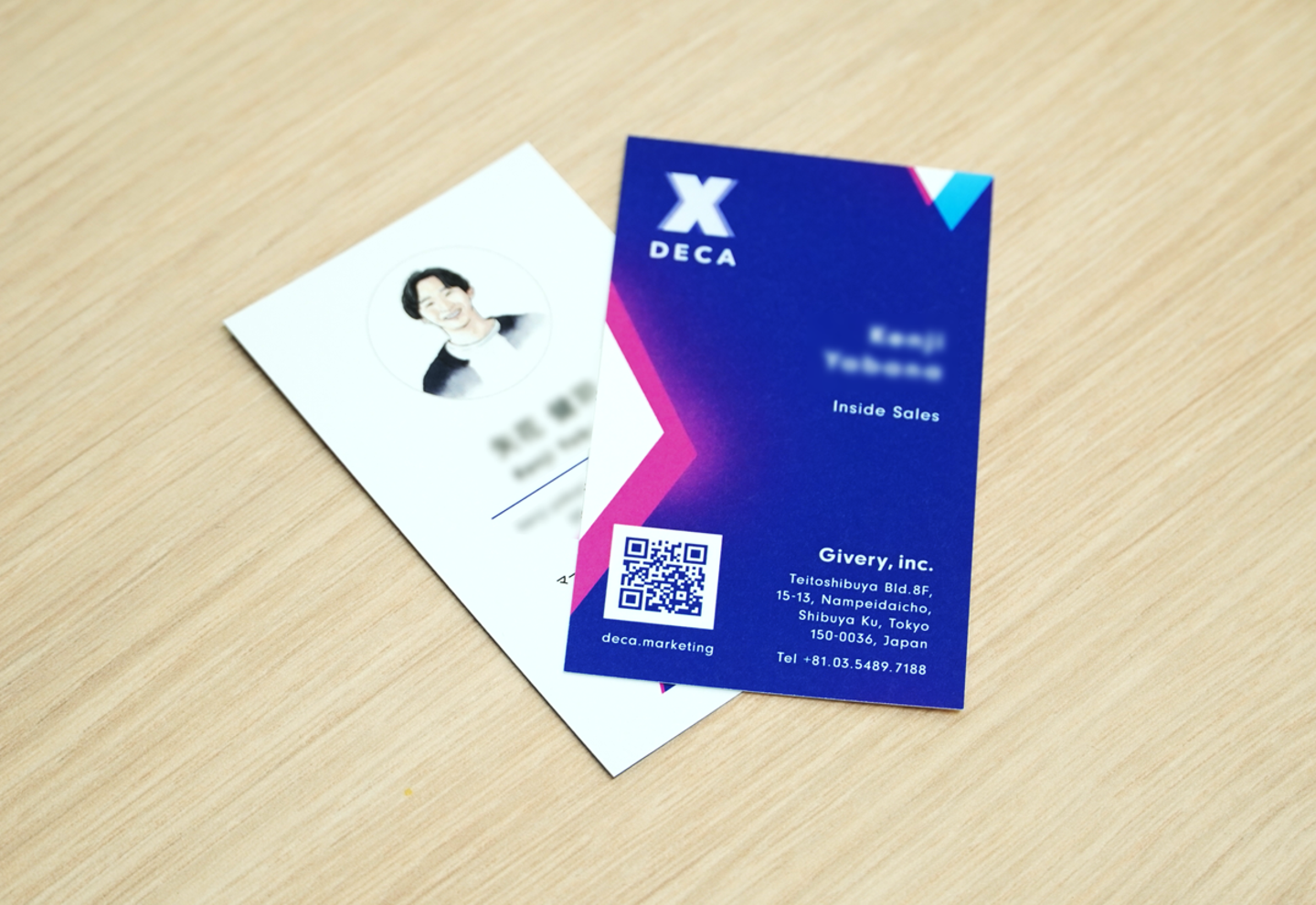▼クールな新デザインの名刺。ちなみに、似顔絵イラストは、今後、マーケティングDX部門の配属メンバー全員に支給されます!