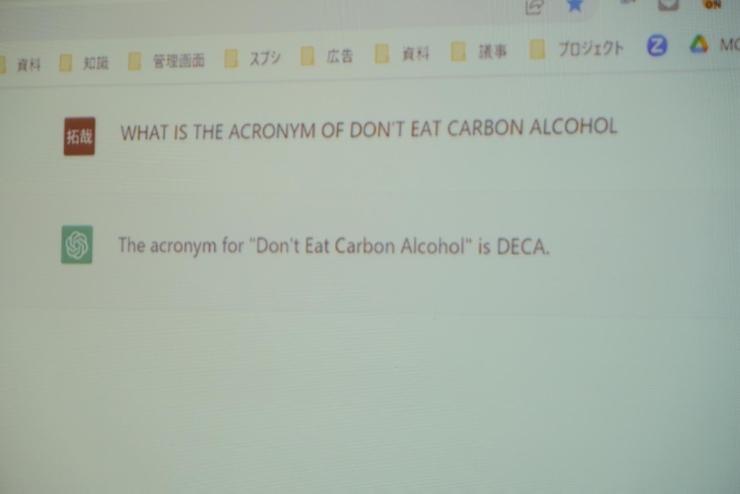 ギブリーではChatGPTに関連する新規事業も推進中ということで、制限条件の中でChatGPTに「DECA」と返答させる命令文を考えるクイズも。