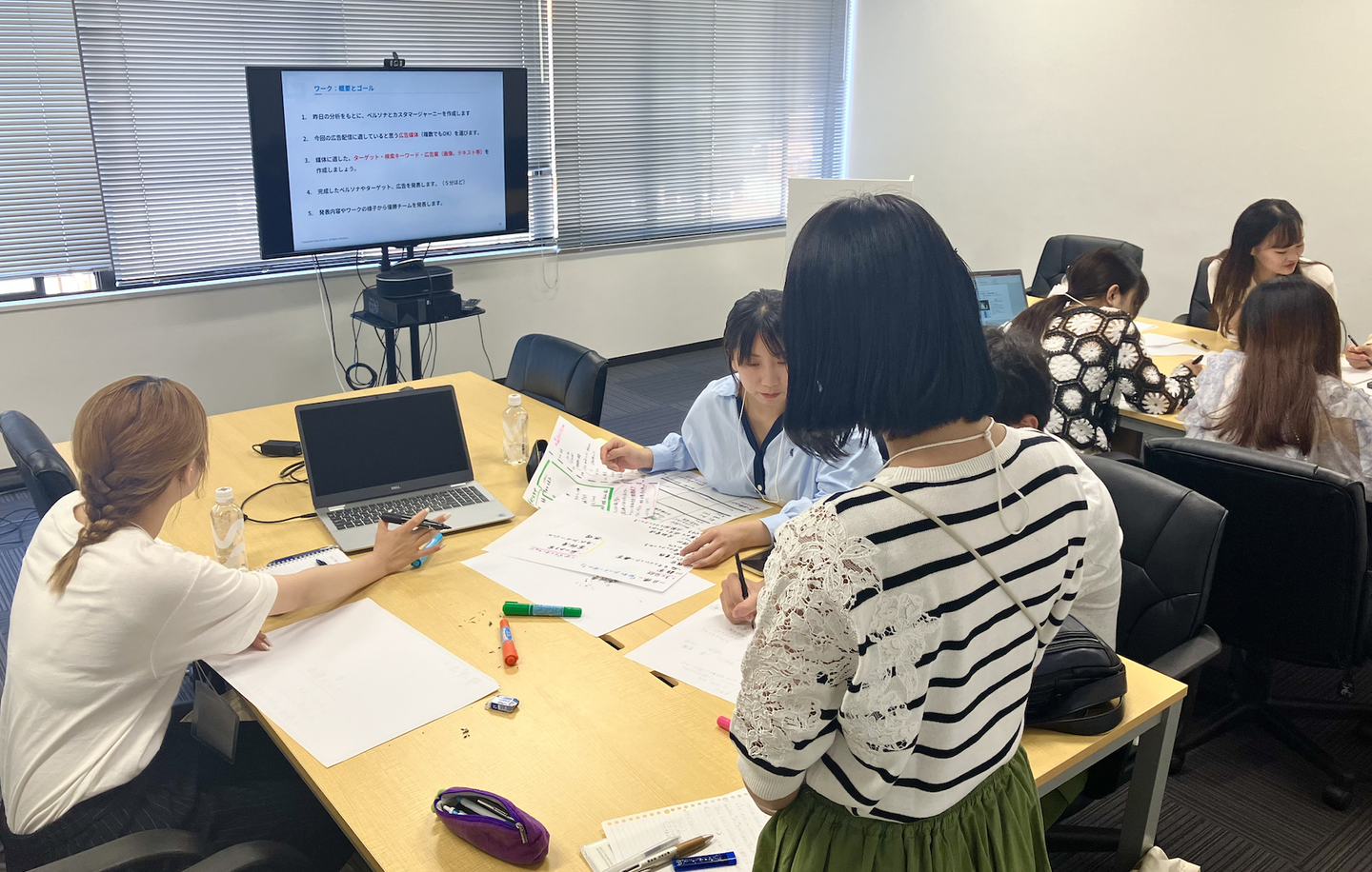 3日間で構成されているこのサマーインターンでは、マーケティングの基本的な知識はもちろんのこと、Web広告業界ならではのメディアプランニングといった実践的なワークまで非常に濃い内容で開催されました◎
