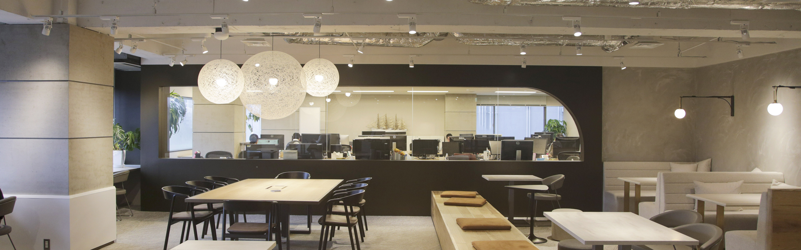 執務室以外で自由に働くことのできるフリースペースは、働く事だけではなく、気軽に声をかけやすいコミュニケーションの場にもなっています。