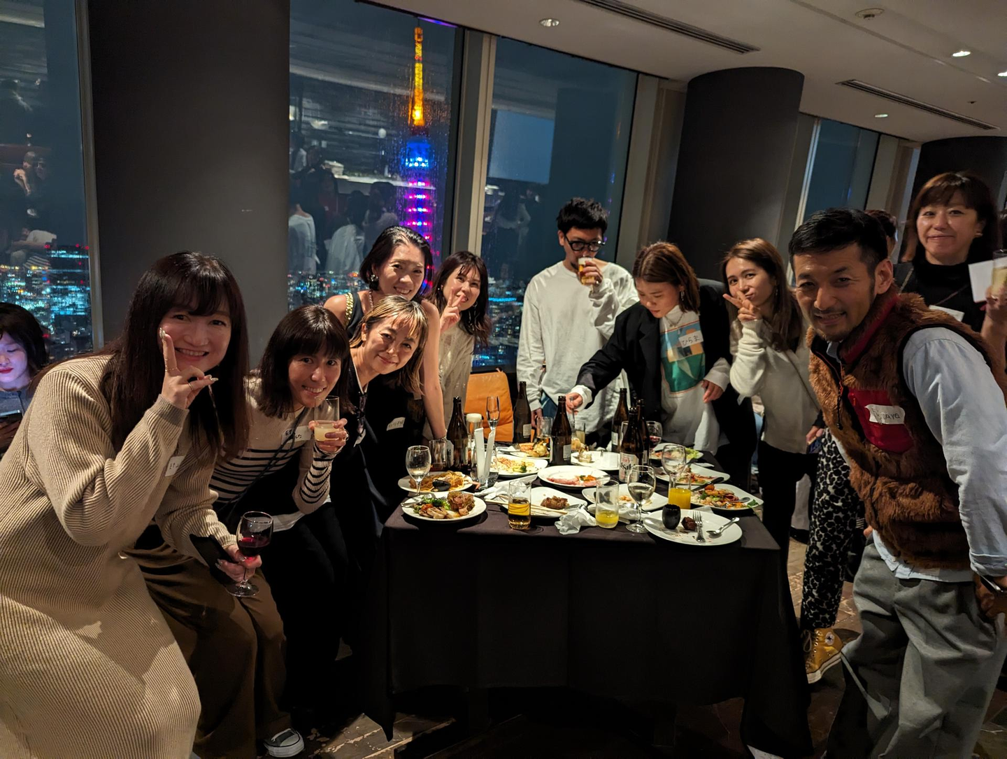 東京タワーの見える素敵な会場で美味しい食事やお酒をいただきながら、普段一緒に働いている仲間同士で趣味の話に花を咲かせていたり、拠点が違うメンバー同士で日頃の感謝を伝えあったり、普段は時短勤務のママさんたちがお子さんを連れて参加してくれたりとオフィスとは違った交流ができた方も多いのではないでしょうか☻