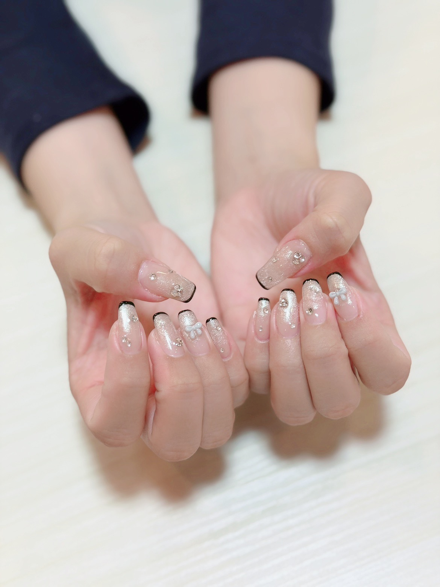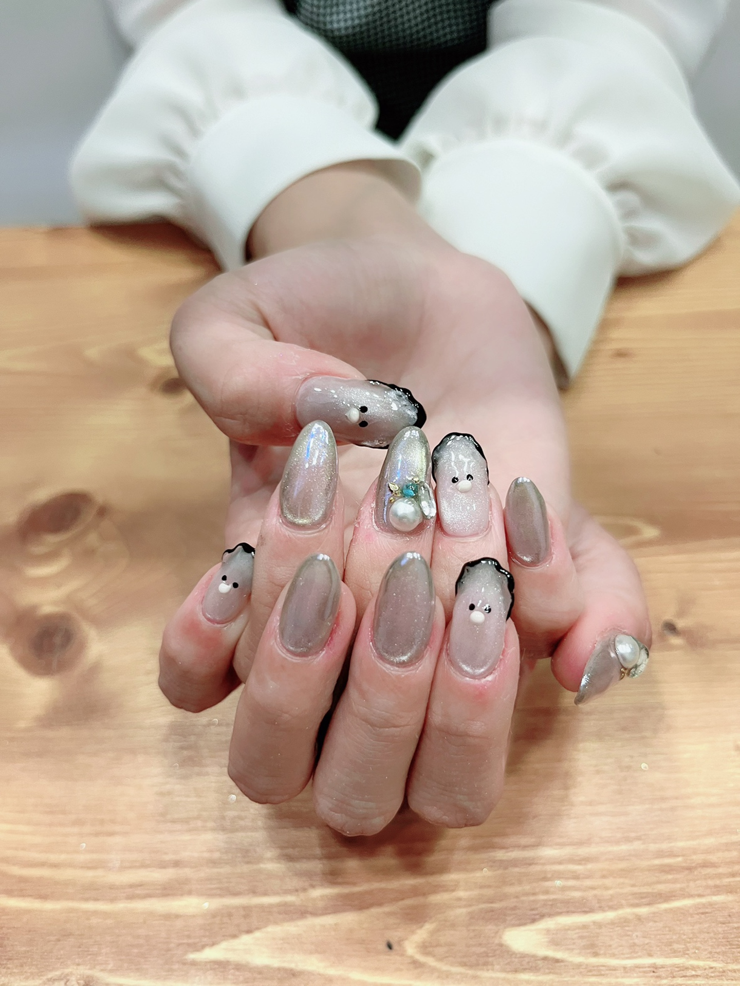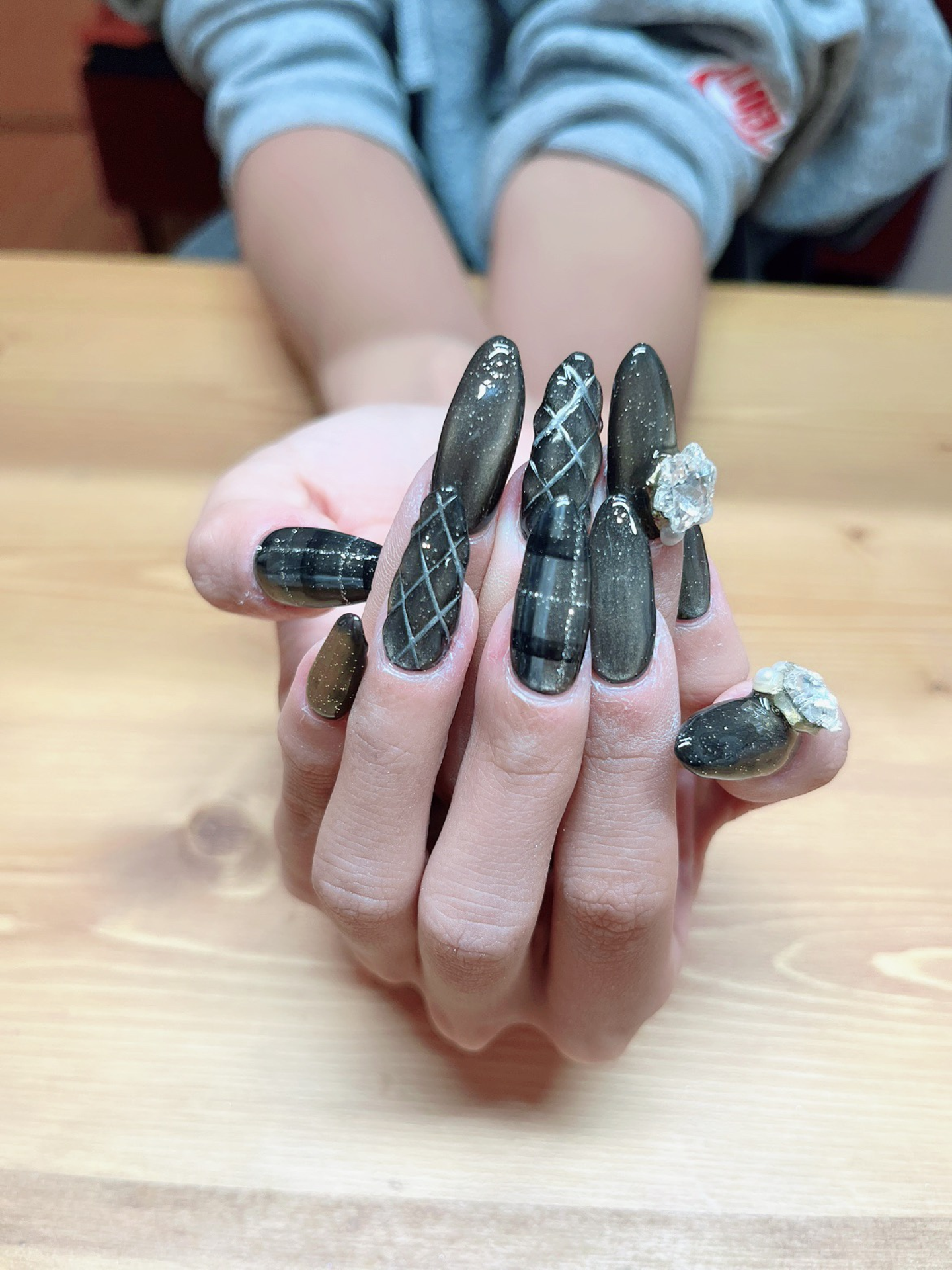 ストーンやパール、メタルパーツなどを取り入れたネイルで、