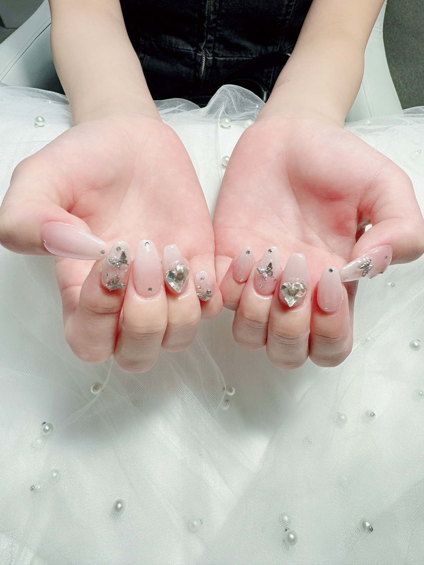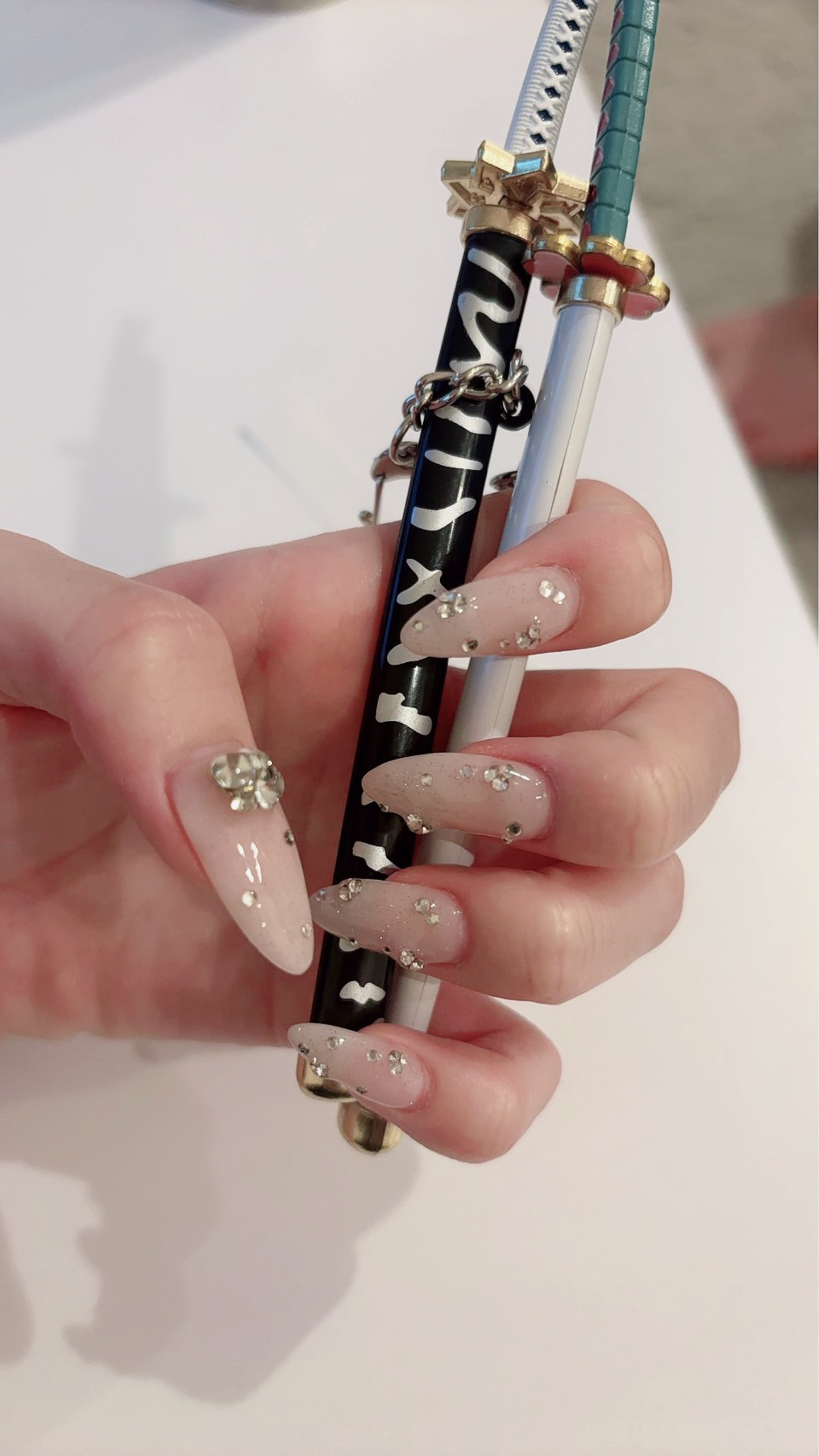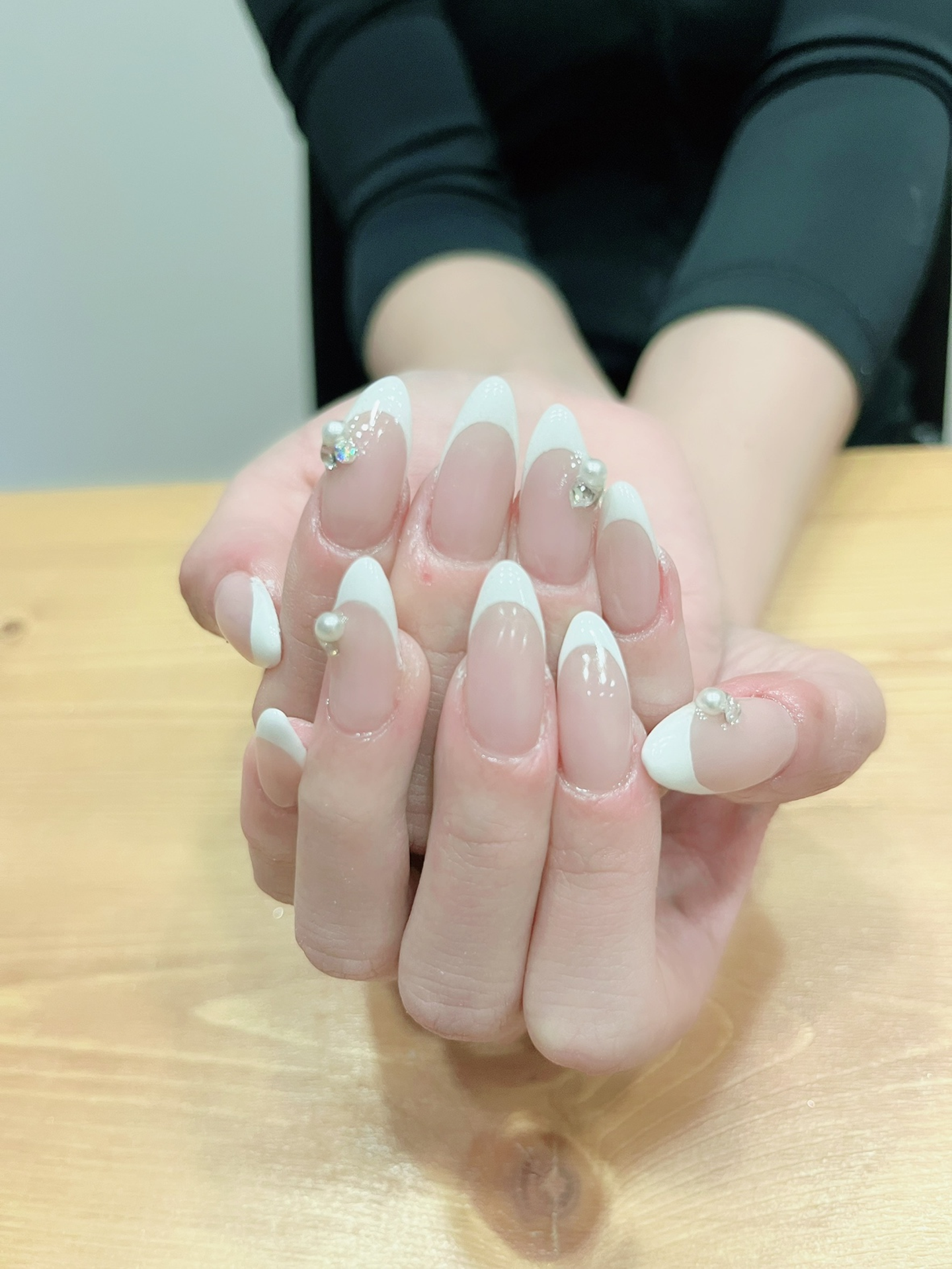 ストーンやパール、メタルパーツなどを取り入れたネイルで、