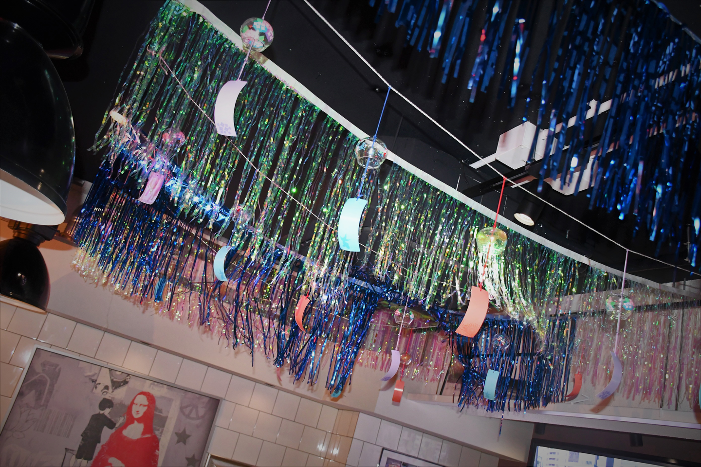 キラキラに装飾し、夜の流しそうめんも案外楽しいです。