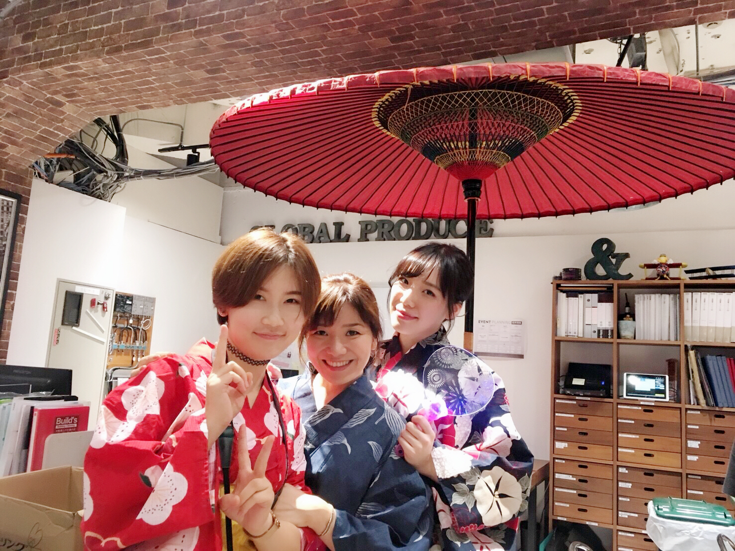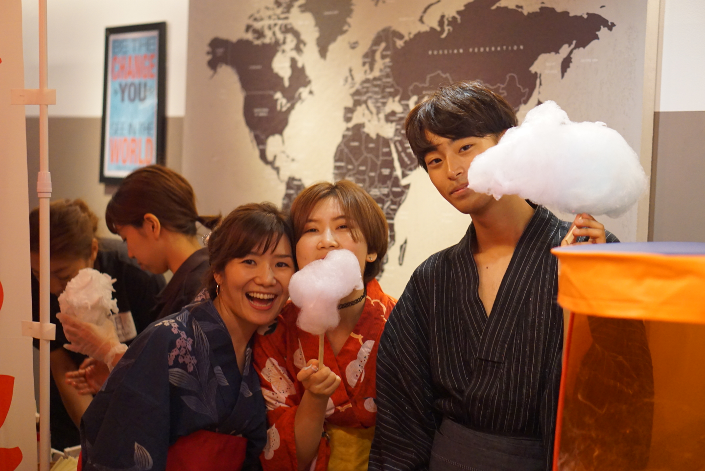 GPメンバーは浴衣&ハッピでお客様をお迎えしました。