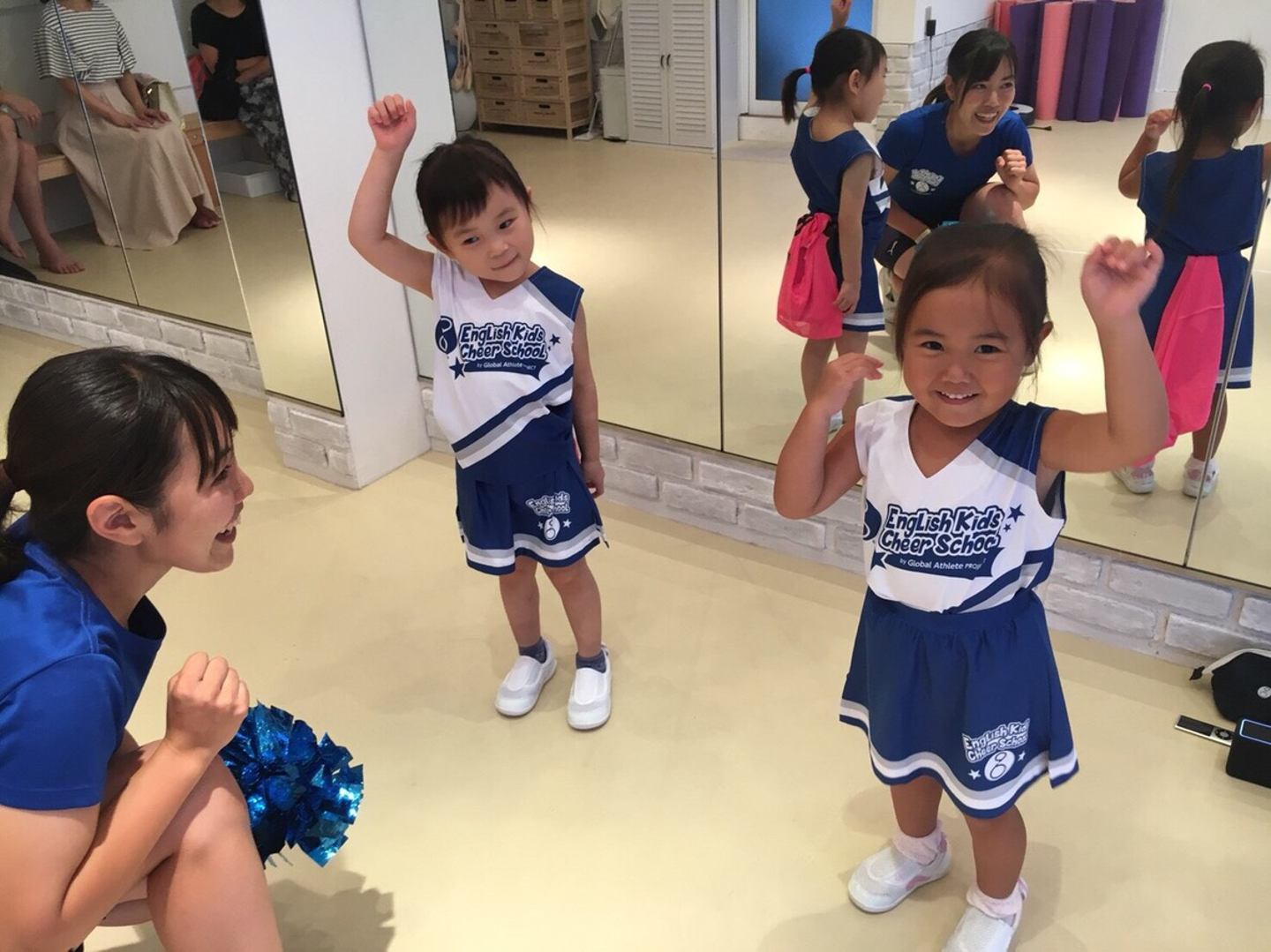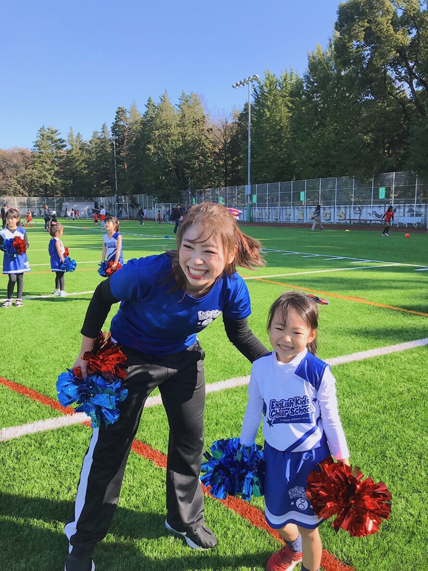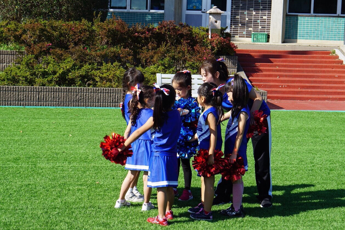 次にお伝えしたいことは、インターナショナルスクールとの交流試合で行ったキッズチアの生徒によるパフォーマンスです。交流試合について聞いた時は本番まで残り2ヵ月しかなく、正直難しいのではないかと恥ずかしながら思ってしまいました。曲探しから始めて曲の編集、ダンスの振り付けを考え、限られた短いレッスンの中で教える。想像以上に大変な事です。でも、子ども達にとって初めての人前でのパフォーマンスを思いっきり楽しんでもらいたい!チアの素晴らしさを多くの人に見てもらいたい!決して完璧に踊らなくてもいいから、自信を持って笑顔で挑戦しよう!私が弱気になってはダメだ!そう思いました。各クラス1曲と勝どき、自由が丘、吉祥寺校の3クラスが全員で踊る3分のダンス、本番まで全員で併せて踊れる事はありませんでしたが、チアスタッフ全員で協力してサポートすれば必ず上手くいくはず!そう信じていました。