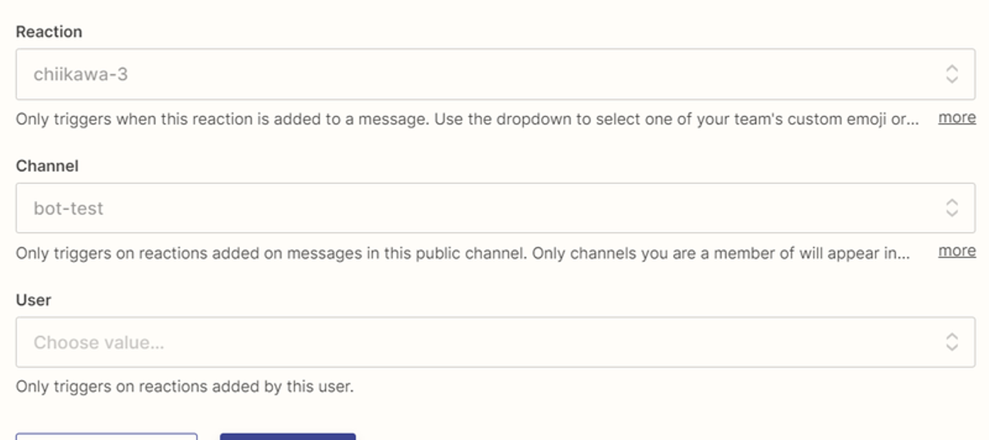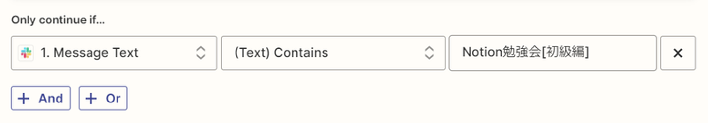 Slackの文章の中に[イベント名]が含まれているもののみ、トリガーを起動します。