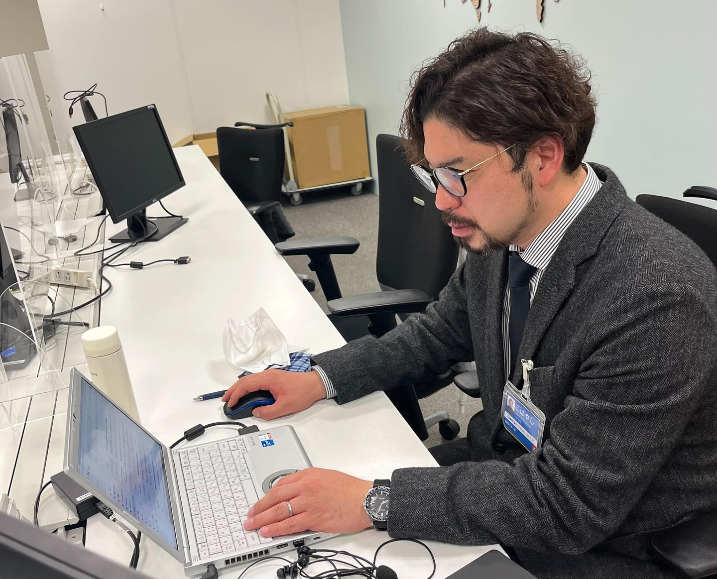 《業務中の小林さん。写真は細身に加工しといてと何度も言われました(一切しておりません笑)》