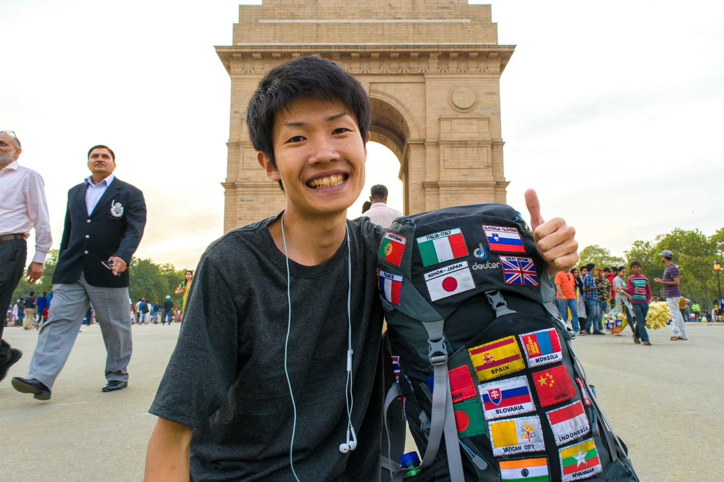 《訪問国の国旗のワッペンを縫い付けたリュックは、今でも愛着のある宝物です( In インド・デリー)》※GMOリサーチにはインドオフィスもあります!
