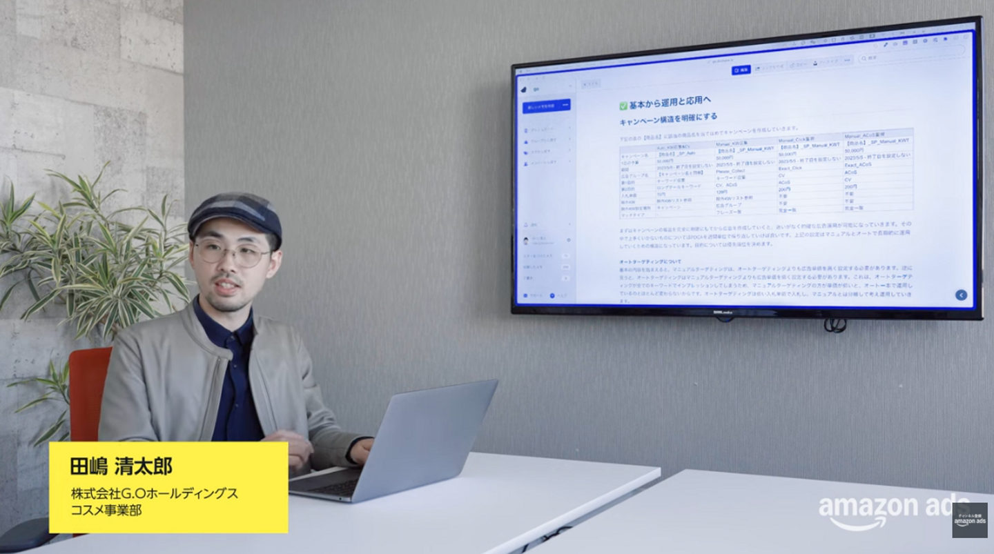 さらに、マニュアルとオートターゲティングを併用してロングテールのキーワードを拾うことから始め、地道に成果を積み重ねてビッグワードでの成功に至るステップが推奨されています。NULLでは、**限界ACOS(広告費用対売上高)**を設定して広告予算を管理しており、この運用体制を3年続けた結果、Amazonでの売上を前年同期比で1.7倍に伸ばすことに成功しました。
