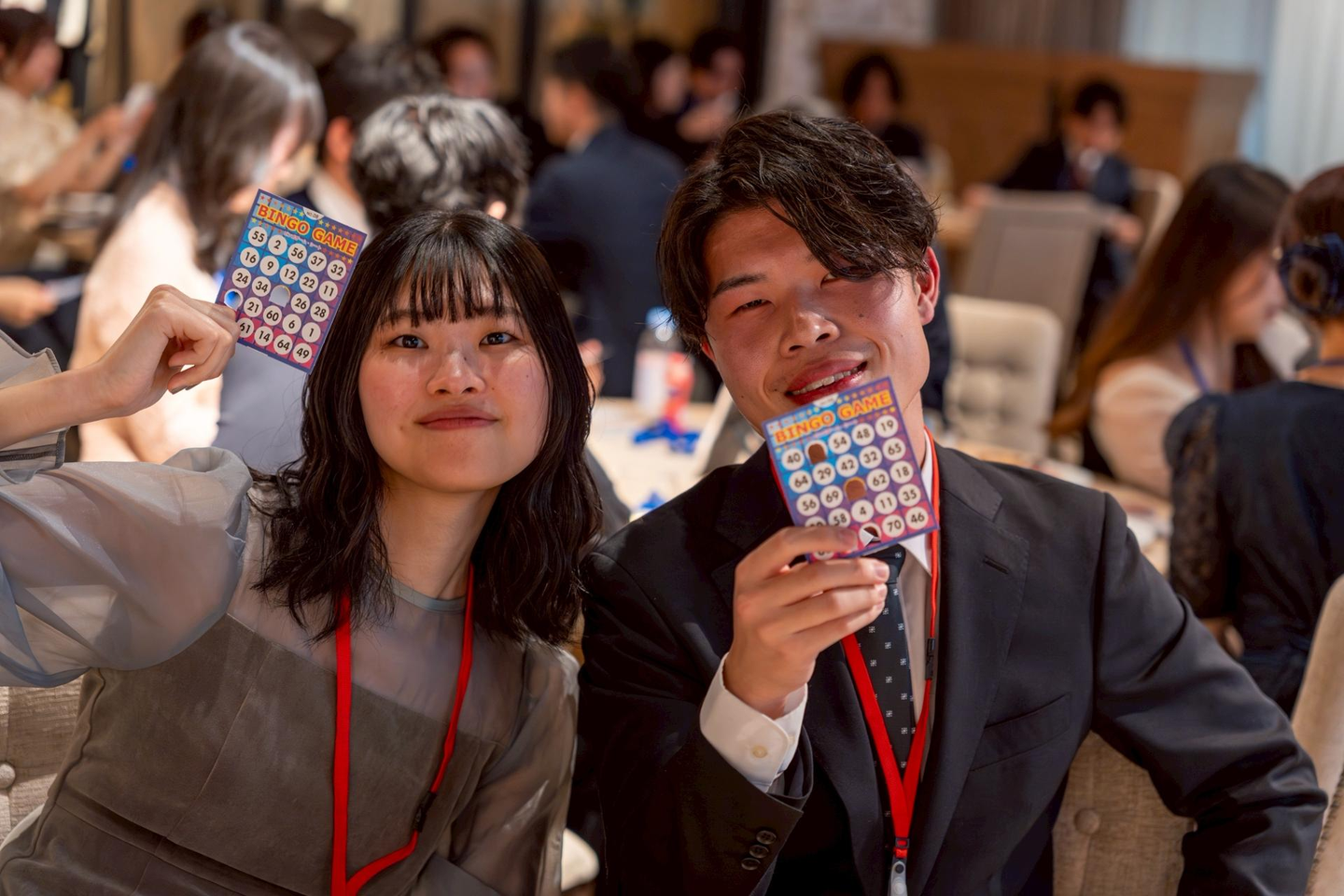 続いて行われたのが、ビンゴ大会。お菓子の詰め合わせセットから電化製品10000円分のギフト券や2人の思い出づくりのためのペア体験ギフトなど、バラエティ豊かな景品をかけて白熱したビンゴ大会が行われました。