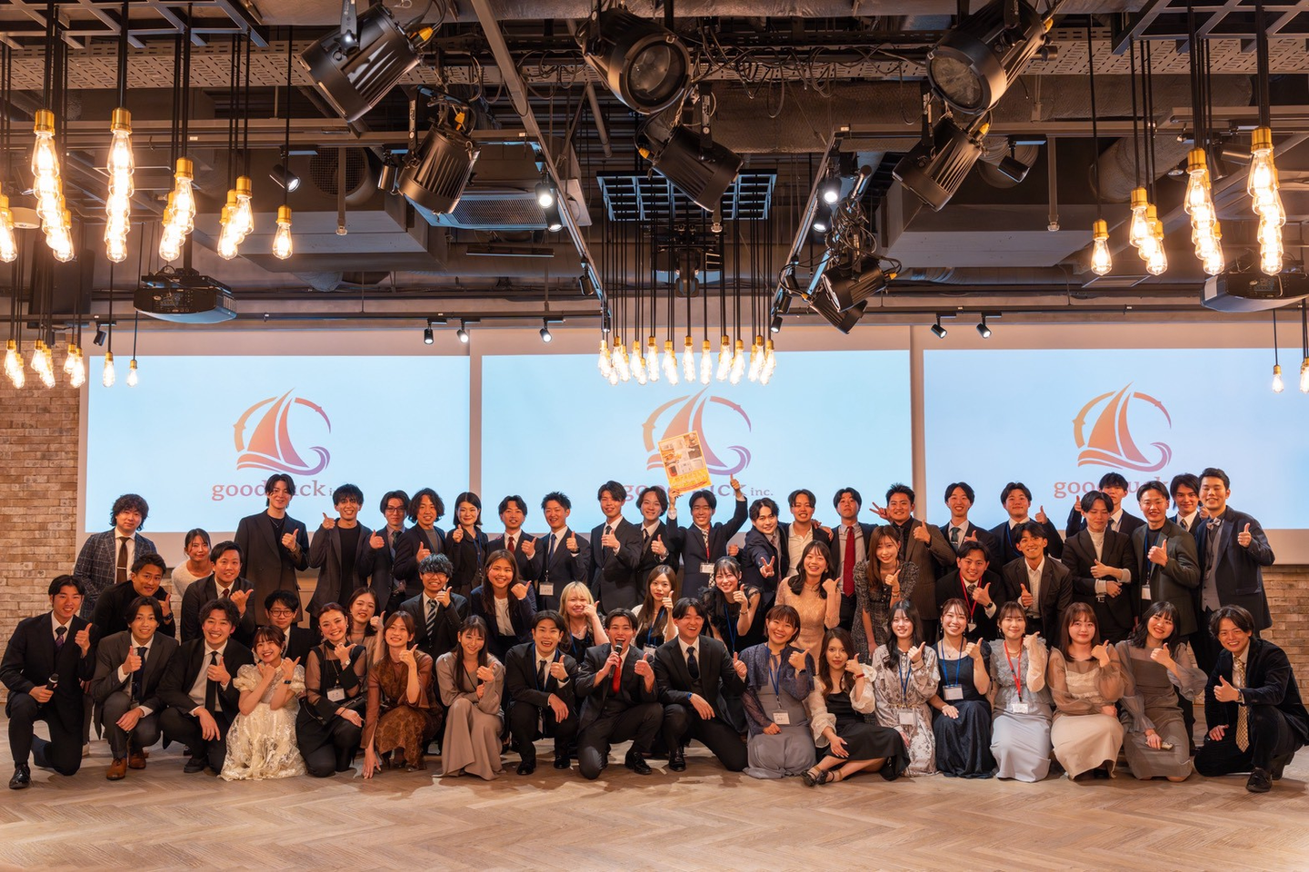この日集まったのは、現役のインターン生だけではありません。過去にgood luckで活動していた学生、社会人、そして今まさに挑戦を続けているメンバーたち。総勢54名が一堂に会し、今年一年の思い出を振り返り、互いの成長を称え合う特別な一夜となりました!