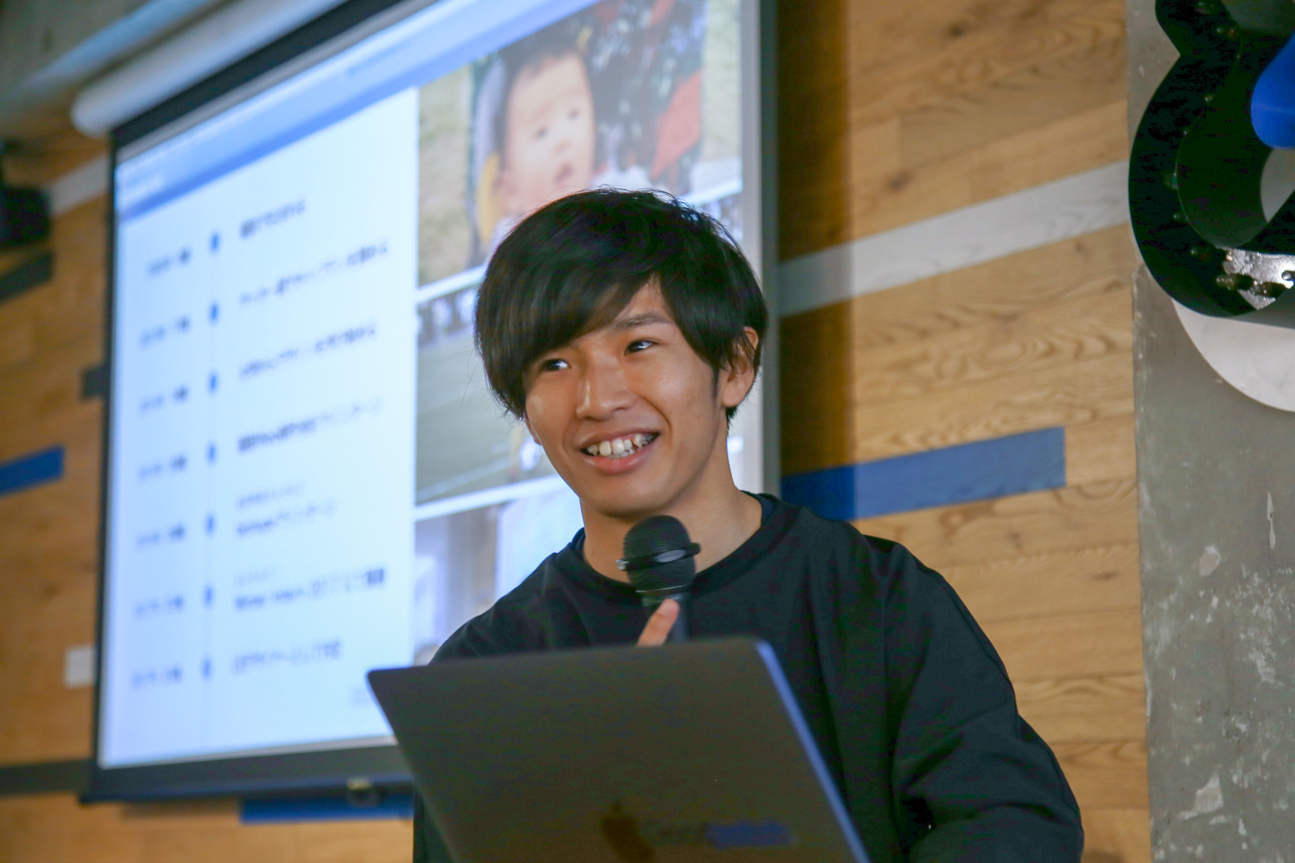 UIデザイナーとして入社した彼は、グッドパッチのウィンターインターンの優勝チーム出身。その際作ったアプリについて紹介したり、卒業制作で研究していた「サウンドファシリテーション」という手法についても話してくれました。テンションに合わせて最適なBGMをチョイスすることで、ワークショップ参加者の行動や感情をコントロールすることができるそう。今後、グッドパッチのワークショップに生かしてくれることが楽しみです。