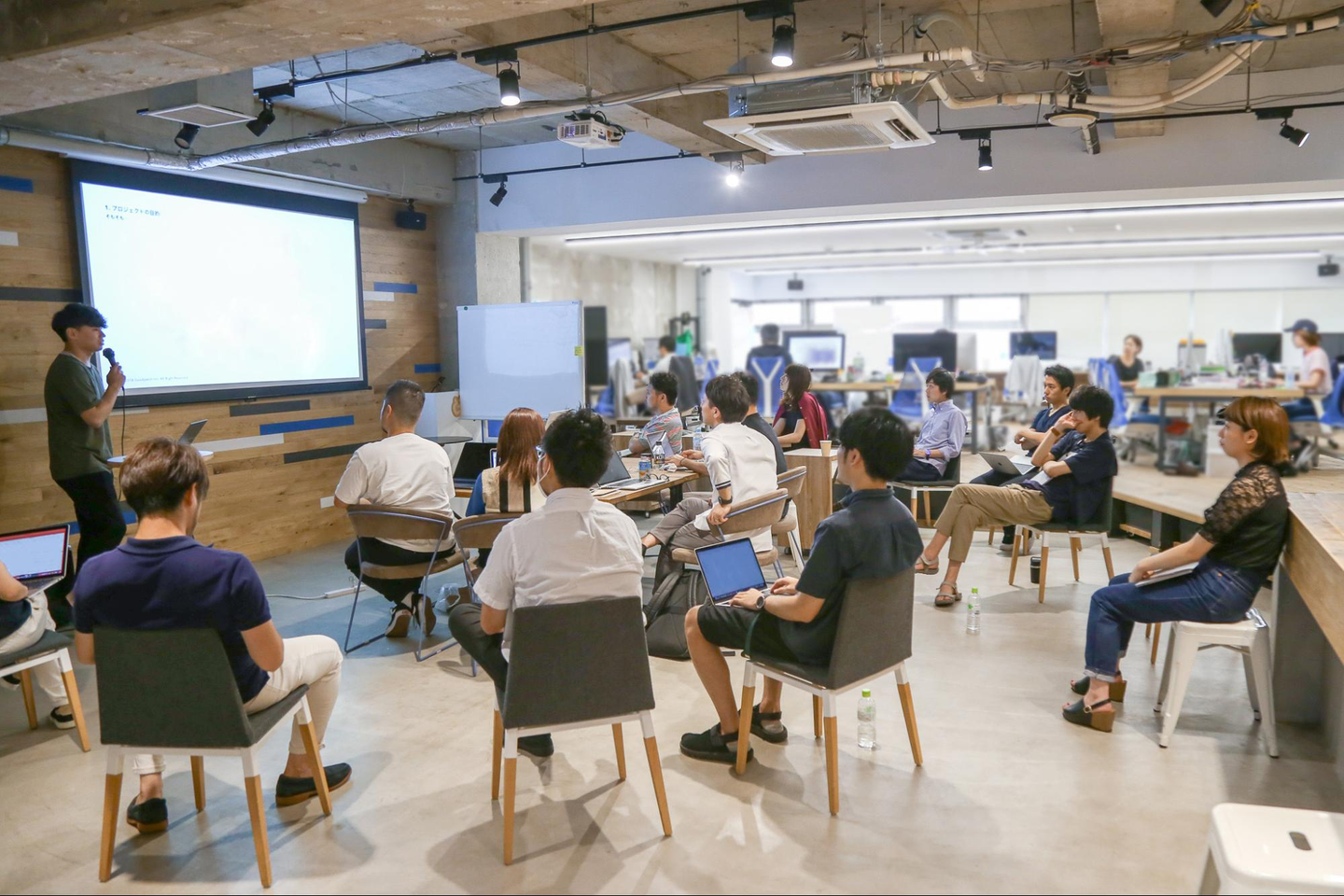 今回のプロジェクトレビューは、年度末の7月下旬から8月にかけての2週間。オフィスのオープンスペースで実施されました。