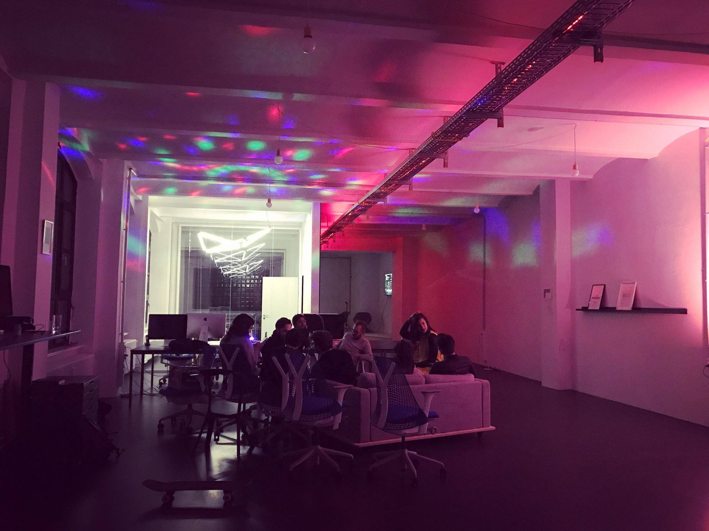 オフィスの中もアートの街、ベルリンらしくクリエイティブな環境です。オフィスの様子は相互にビデオカメラを通して見ることができます。