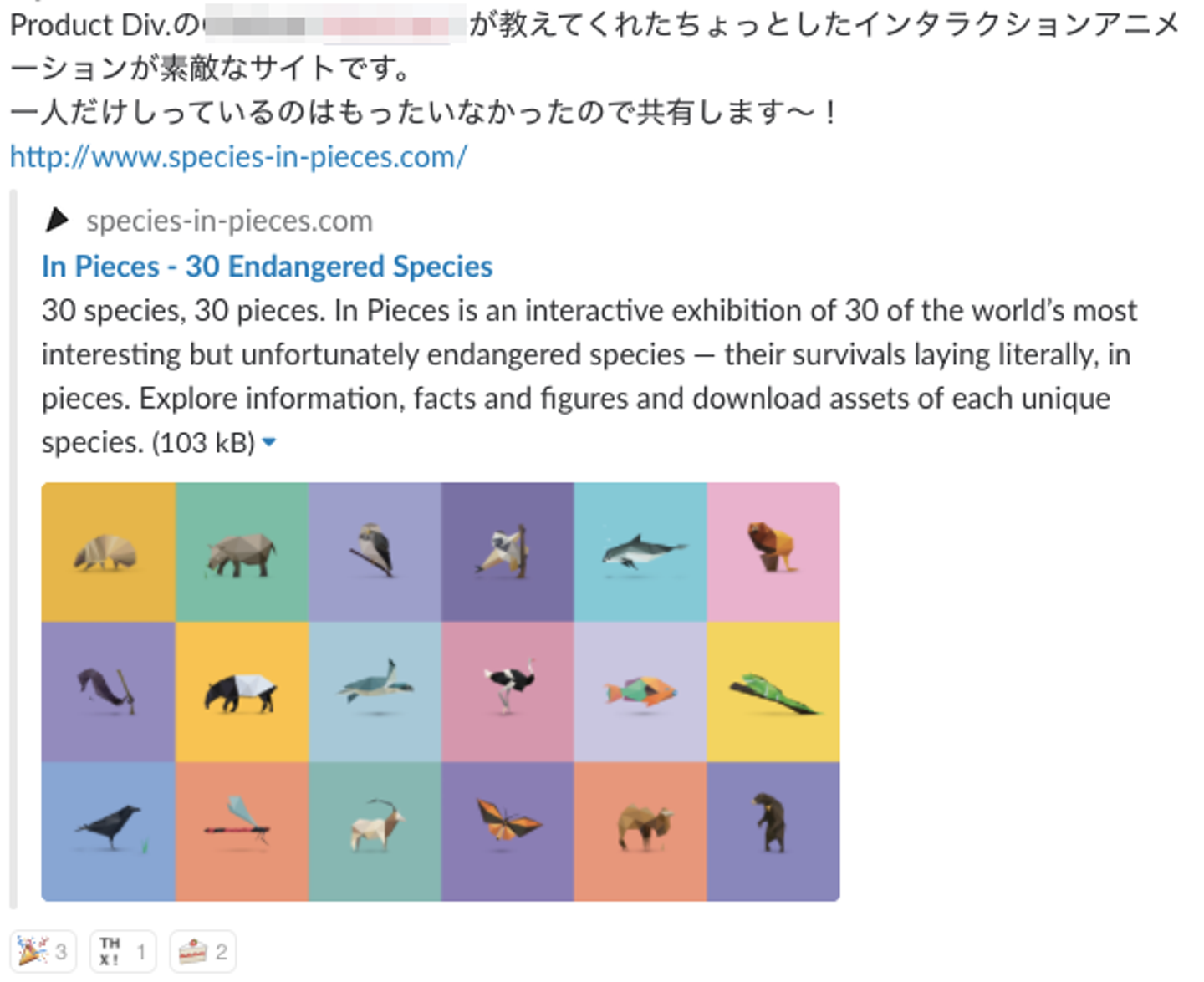 ブログの他にも、主催イベントの感想など、会社が発信している情報についての反応がリアルタイムで分かるので、とても便利です。Twitterなど外部サービスと連携できるのは、Slackならではの機能なので、ぜひ活用してみてください!