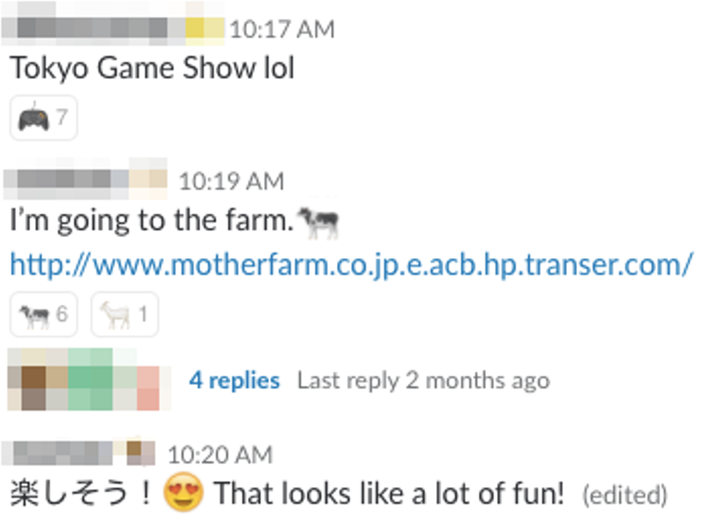 このように、iOSの絵文字がリアクションで使われることも多いですが、メンバーが作成したオリジナルの絵文字もたくさんあります。