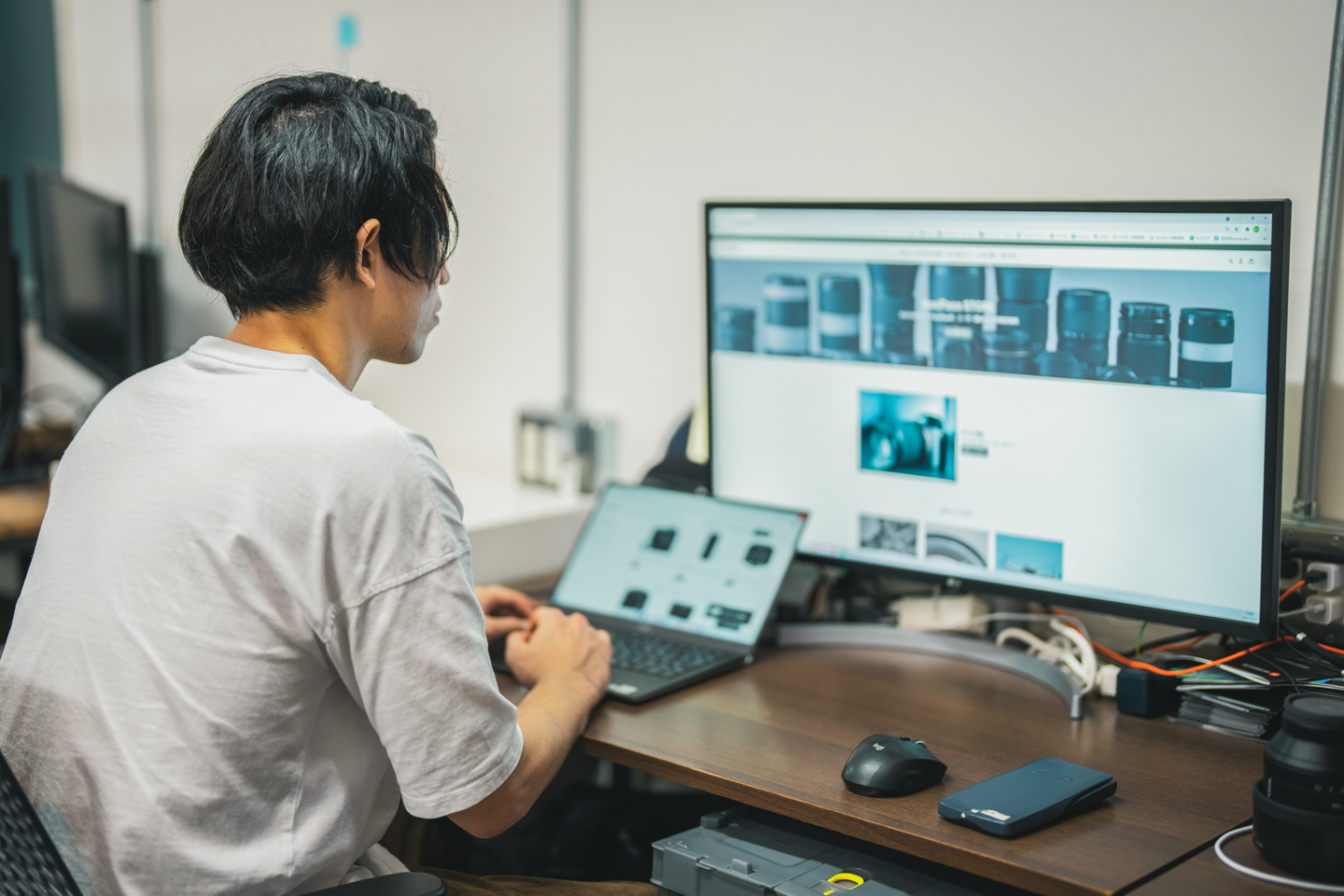 「常にデータや機材と触れ合うので、カメラ好きな自分にとっては面白い仕事ですね。新商品はすぐに入荷してメンバーと楽しさを共有できる、機材にすぐ触れることができるのは特別な体験なんですよ」