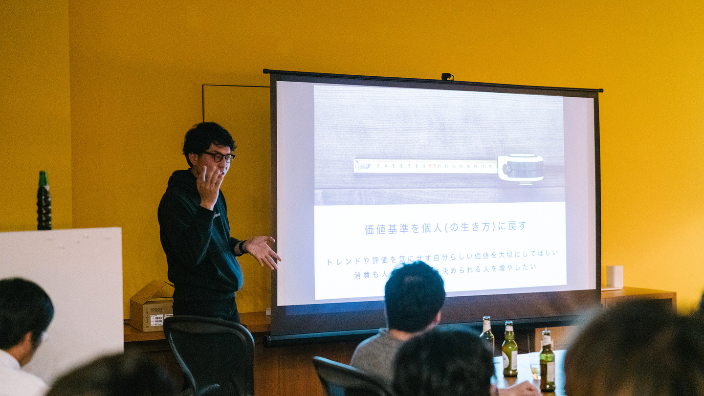 彼らの面白さの真ん中には「既存の仕組みを疑う」という姿勢が通底しているように思う。武蔵野美術大学在学中に「TYMOTE」を立ち上げた井口皓太氏がその後作ったクリエイティブチームが「CEKAI」。その仲間で作ったクリエイティブコミュニティが「BAUS」。いまそのBAUSを運営するのが「モーフィング」。今日はそのCEKAIから鈴木くんと、モーフィングから吉田くんが来てくれて話してくれました。まずは鈴木くんから、最近長野県諏訪市にある時計メーカーと立ち上げたブランドについて、詳しく話してくれました。概要はリンクを見てもらうとして、ここではぶっちゃけ話がメイン。僕自身はレベニューシェアで事業会社と共に事業を起こすことに俄然興味が湧きました。