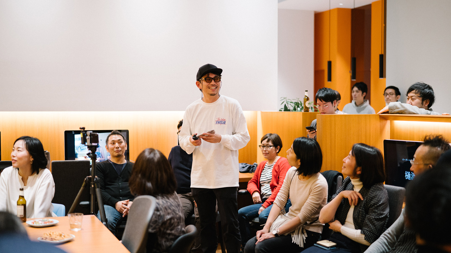 今回話してくれるスピーカーはみんなまだ30代と若く、ゲストのの自己紹介が終わると和やかムードに。そこで先頭を切って「To Nine」の増田くんから自己紹介の始まり。奥で笑うのは吉岡くん。
