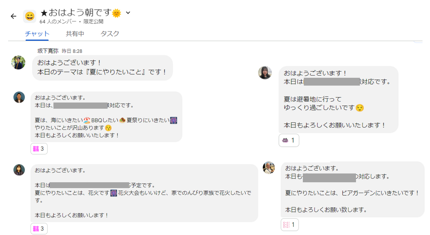 ↓(おはようチャットでの様子)