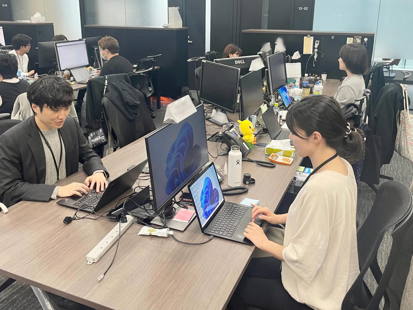 新宿オフィスにはGlossomの他にもグリーのDX事業、コマース事業に関連するグループ会社が入居しています。それぞれの会社はパーテーション等で区切らずワンフロアでつながっているため、解放感があります。また、物理的な隔たりを持たないからこそ、より一層各社の連携と事業シナジーを強化させ、更なる成長に向けて日々取り組むことができています。