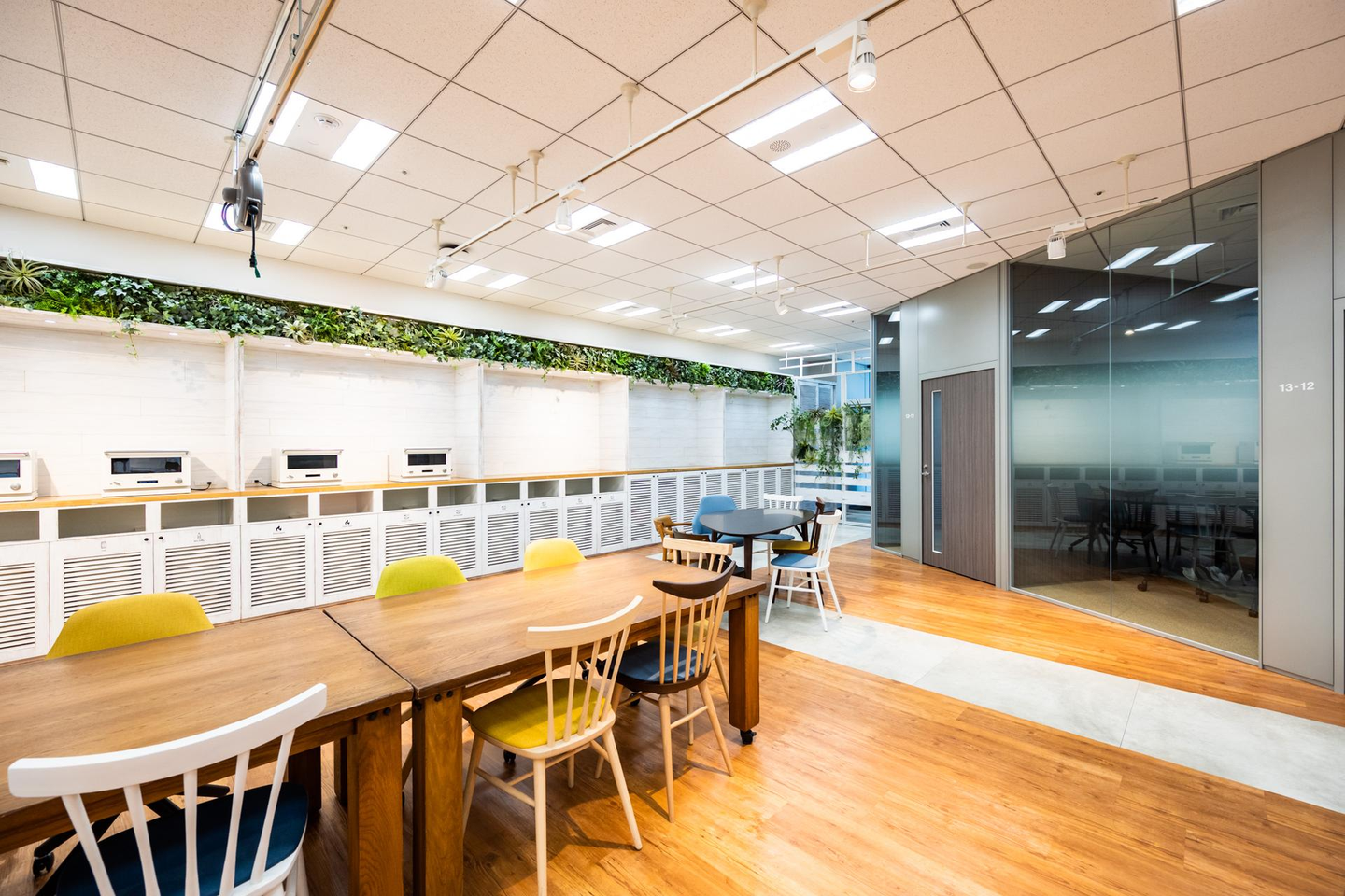 もちろん飲食スペースとしても利用可能なため、昼時には周辺の飲食店でテイクアウトしたり、自宅で用意してきたお弁当を囲んで、ランチ時間を楽しむスタッフの姿もよく見られます。電子レンジも自由に利用可能です!