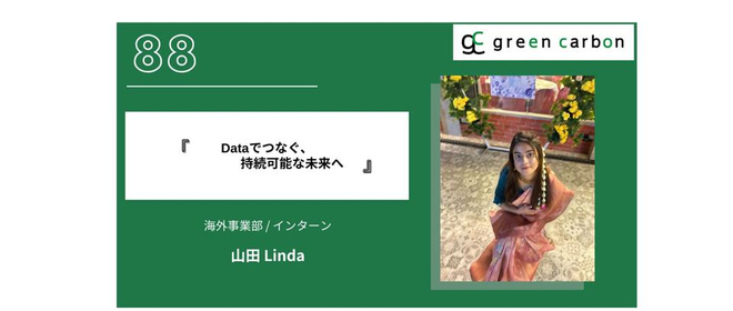 氏名: 山田リンダ所属部署・役職: 海外事業部 インターン専門分野/担当業務:プロジェクトポテンシャル調査、投資家向けプロジェクト進捗レポート作成、データ収集大学: 筑波大学専攻/学んでいること:グローバル・イシューズ専攻(学士課程) ジョインしたきっかけ: 学生のうちから実際の企業環境で実務経験を積みたいと考え、Green Carbonに入社しました。特に、データやリサーチがどのようにサステナビリティや気候関連プロジェクトを支えているのかに強い関心を持っていました。分析力や組織力、そしてプロフェッショナルなチームワークを実践的に身につけられる環境だと感じたことが、入社を決めた理由です。...